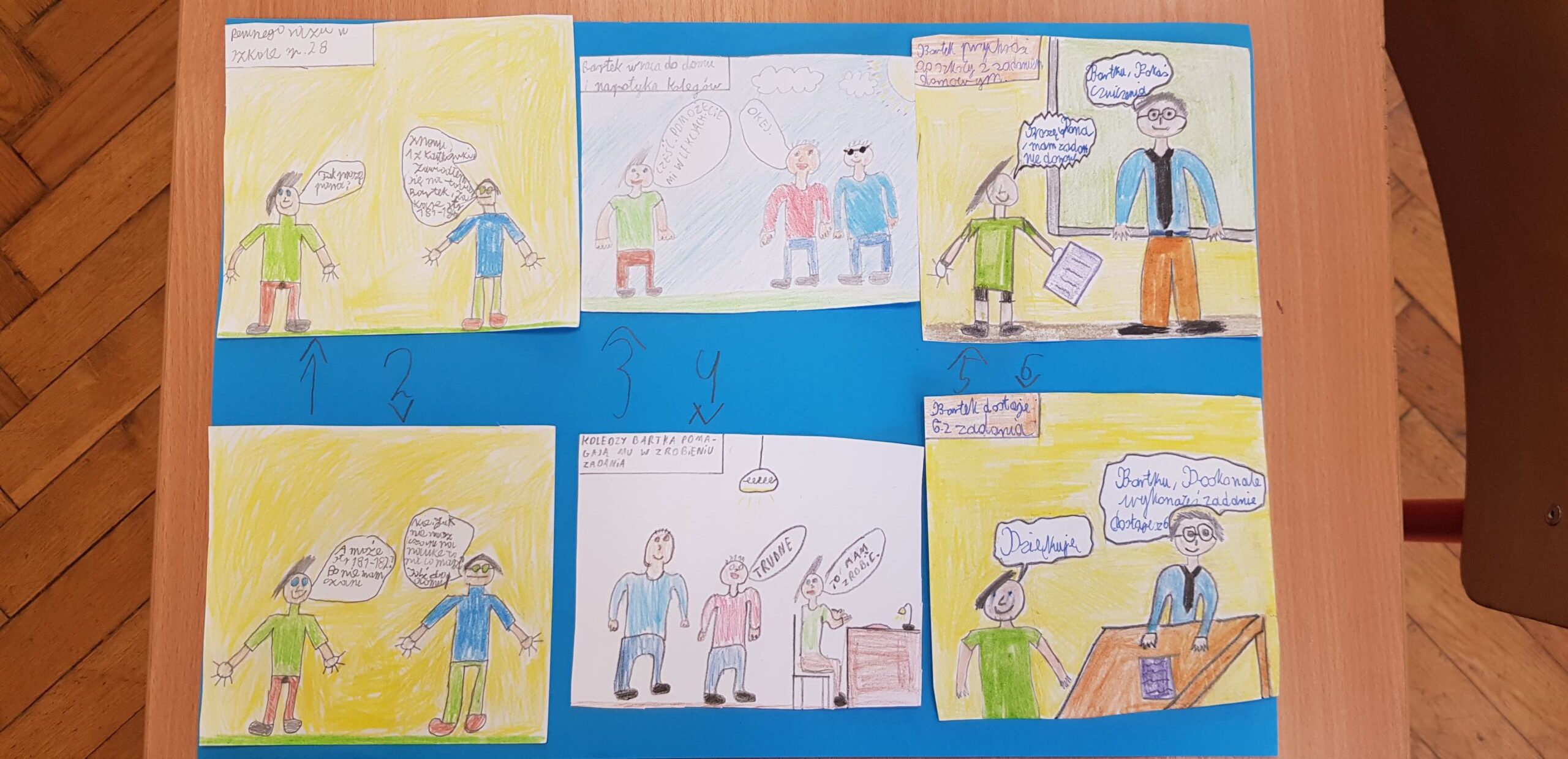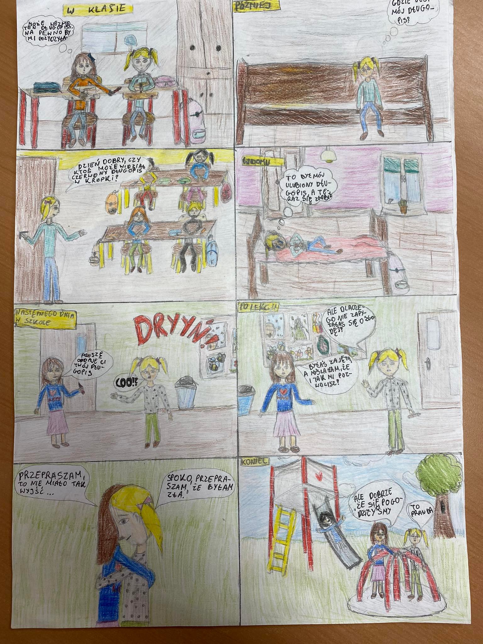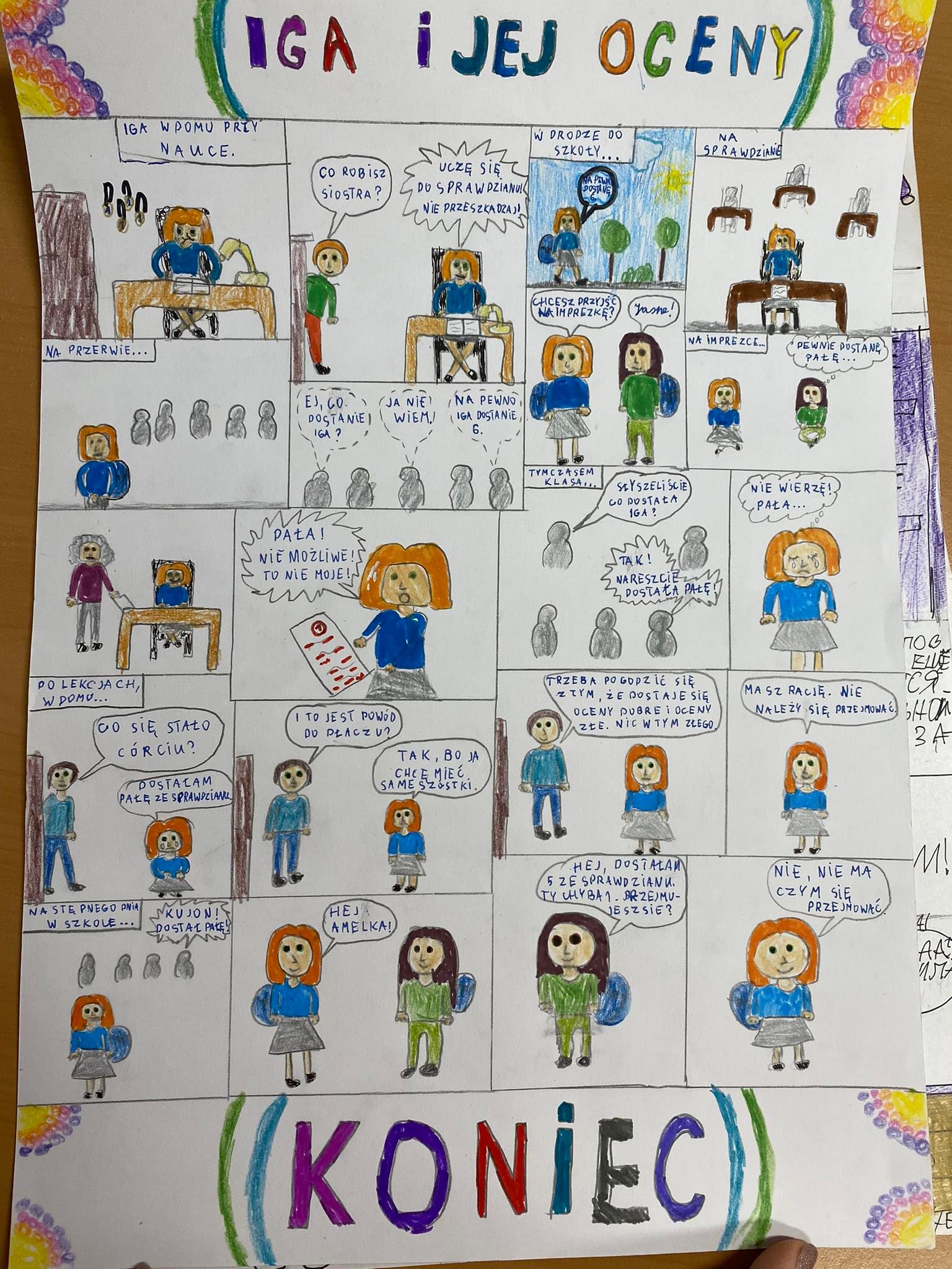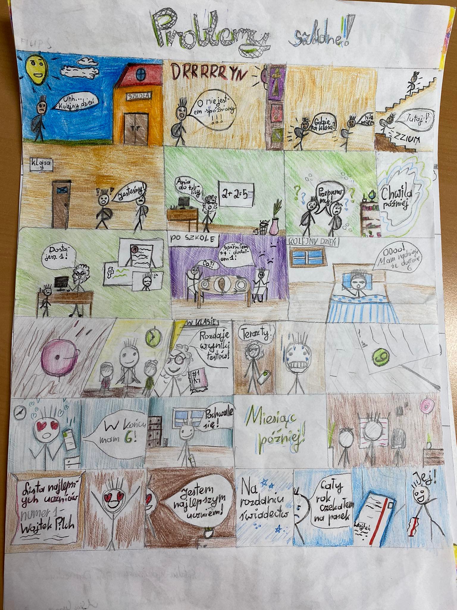 Zapraszamy do obejrzenia komiksów, które powstały w klasach 4-8 w ramach realizacji kwietniowego zadania certyfikacyjnego w ramach projektu SZKOŁA POZYTYWNEGO MYŚLENIA.