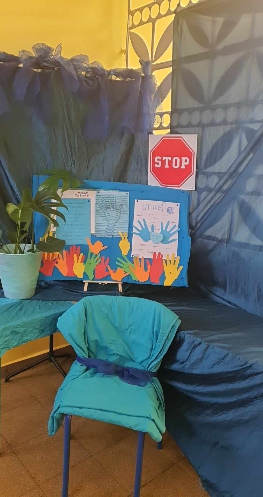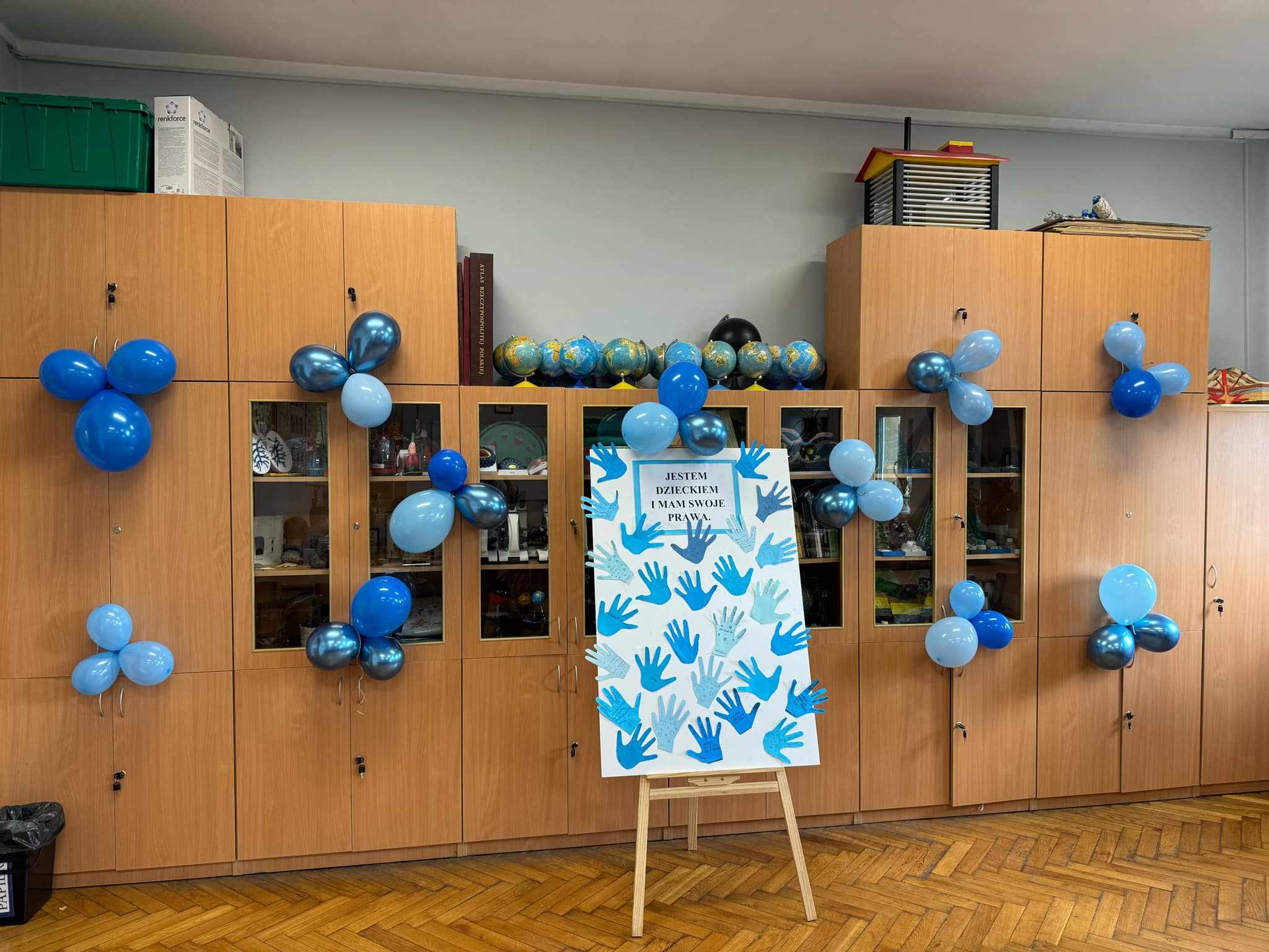 W środę większość uczniów i nauczycieli przyszła do szkoły ubrana na niebiesko (kolor Unicefu). Sale i korytarze również zostały przyozdobione w tym kolorze. Mogliśmy podziwiać prace uczniów poświęcone prawom dziecka, a z gazetek przygotowanych przez nauczycieli dowiedzieć się więcej na ten ważny temat .