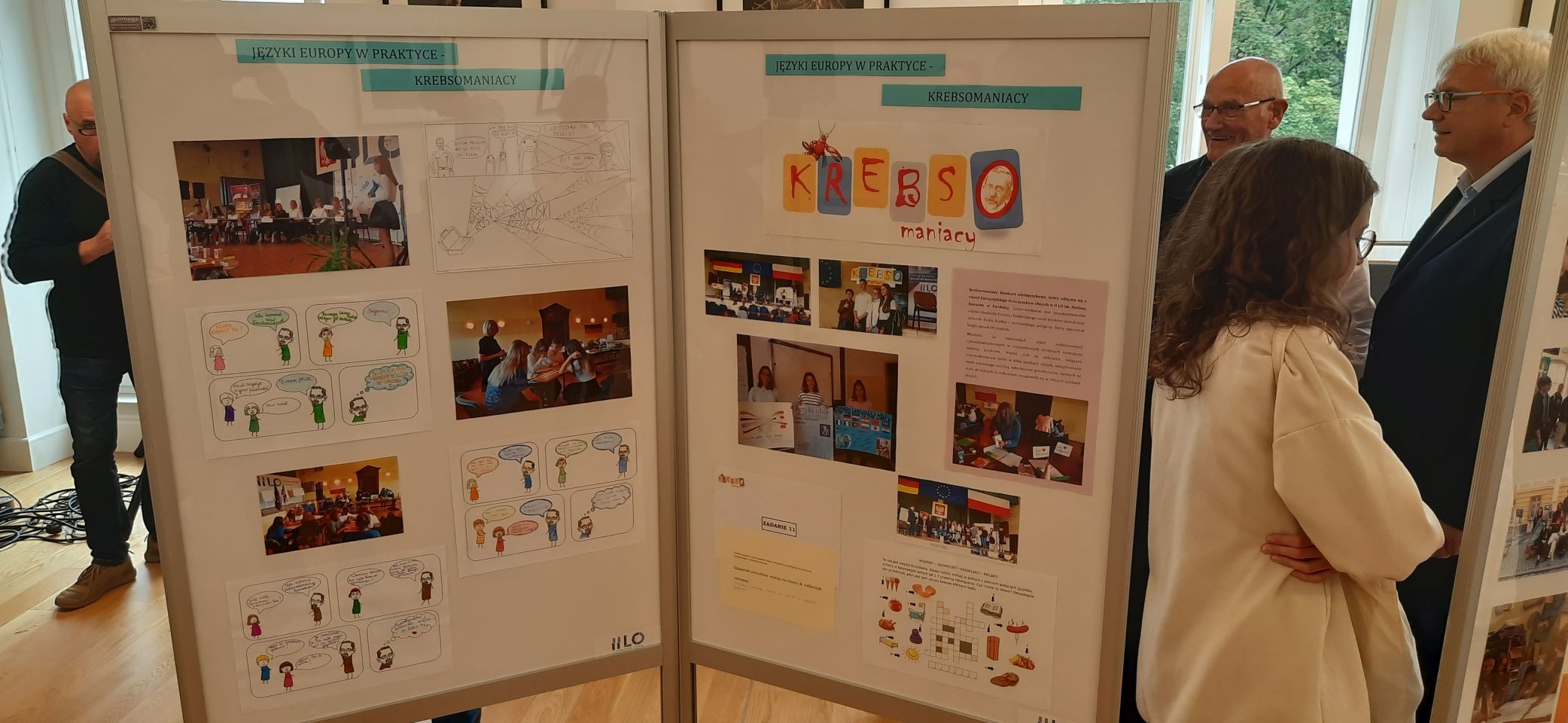 Po warsztatach uczniowie zwiedzali stoiska i poznawali działania II Liceum w Świdnicy, w zakresie propagowania nauki języków obcych oraz poznali życiorys poligloty Emila Krebsa i jego związków z regionem. Na koniec wspólnie odśpiewaliśmy hymn Europy „Oda do Radości” w języku niemieckim i polskim, a po nim wszyscy uczestnicy mieli okazje spróbować regionalnych specjałów.