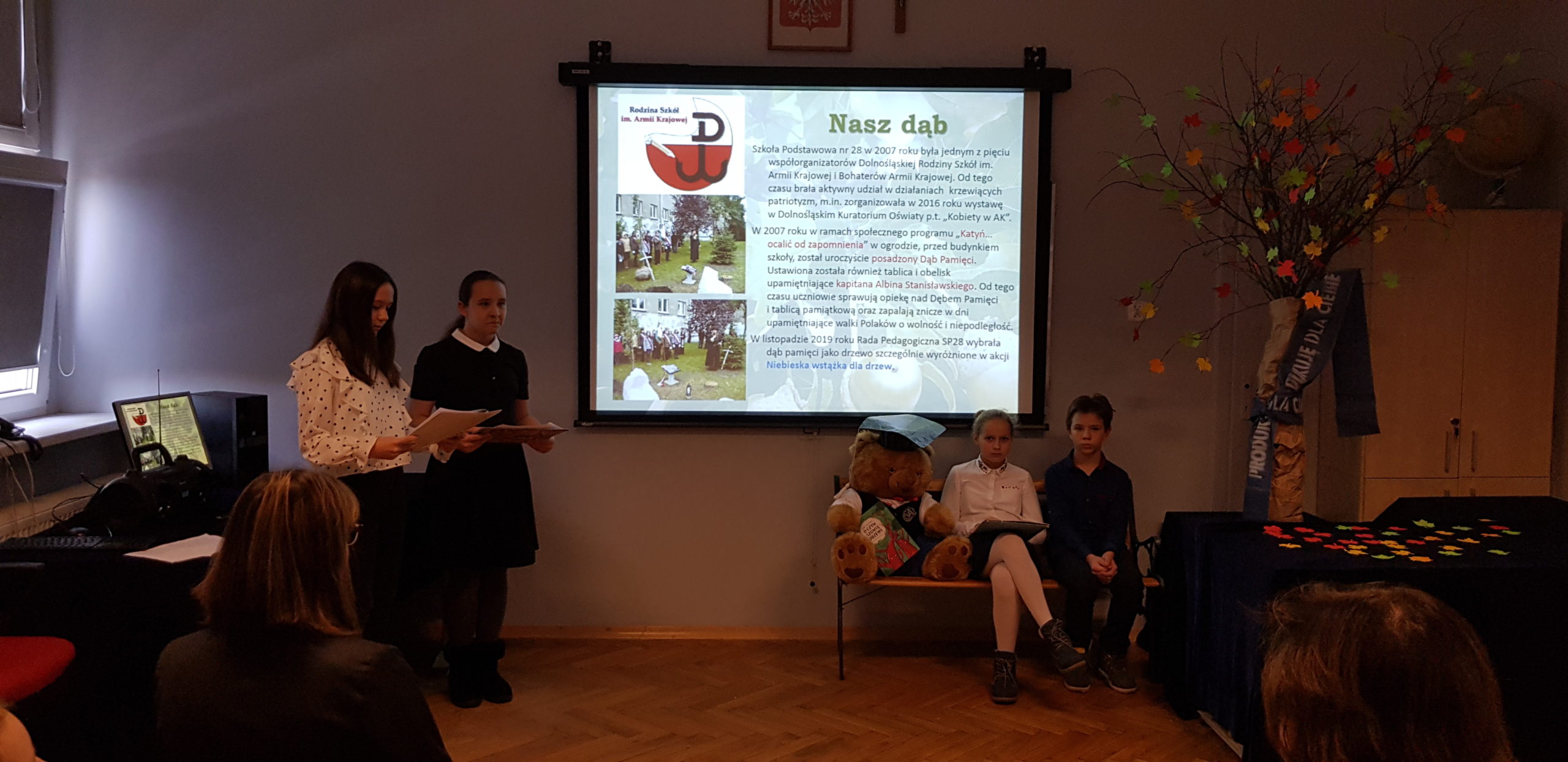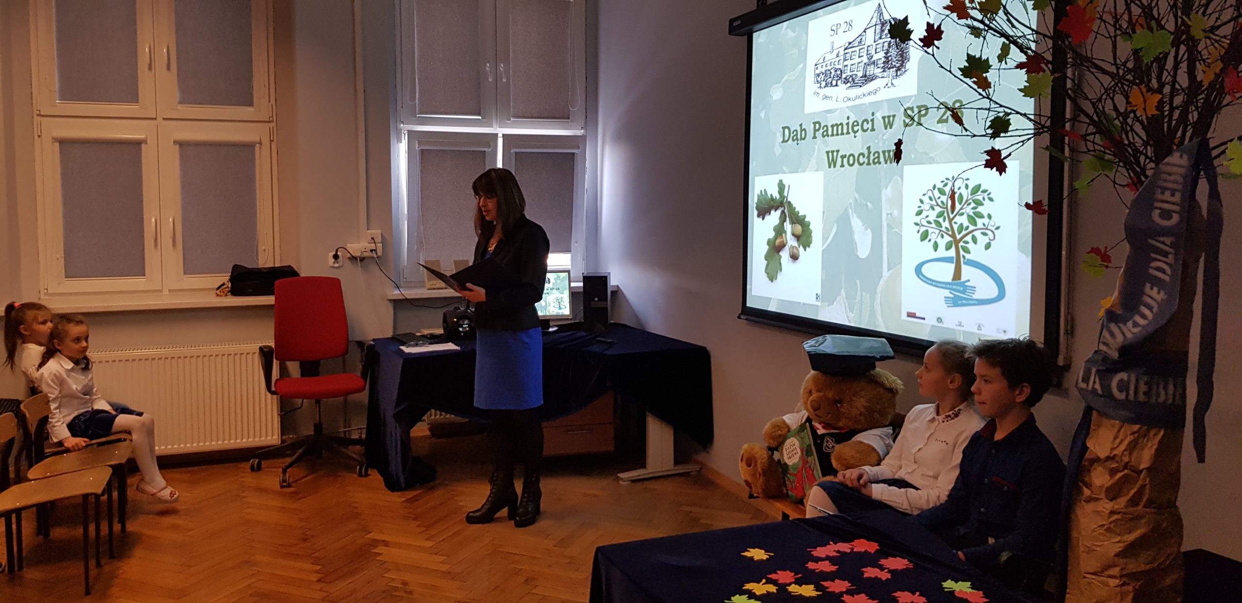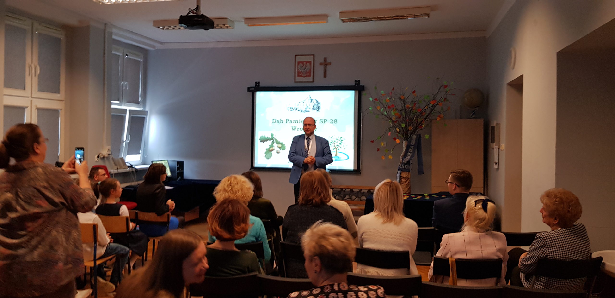 28 listopada 2019 roku w samo południe w naszej szkole odbył się finał akcji Niebieska wstążka dla drzew w SP28. Impreza rozpoczęła się od części oficjalnej. Swą obecnością zaszczycił nas reprezentujący Prezydenta Miasta – p. wicedyrektor Departamentu Spraw Społecznych Urzędu Miejskiego p. Jacek Pluta, wiceprzewodniczący Rady Miejskiej p. Łukasz Olbert, konsultanci WCDN