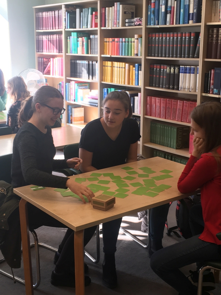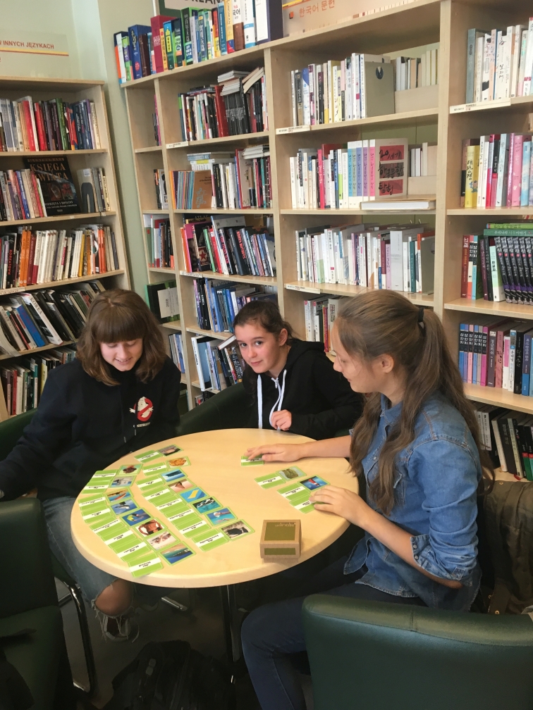 6.11. uczniowie klasy 8A i 8C wzięli udział w warsztatach „Gry i zabawy językowe” zorganizowanych w Bibliotece Niemieckiej. Młodzież bawiła się utrwalając słownictwo i pogłębiając umiejętności z języka niemieckiego. Była to również okazja do propagowania wśród młodzieży czytelnictwa w językach obcych.