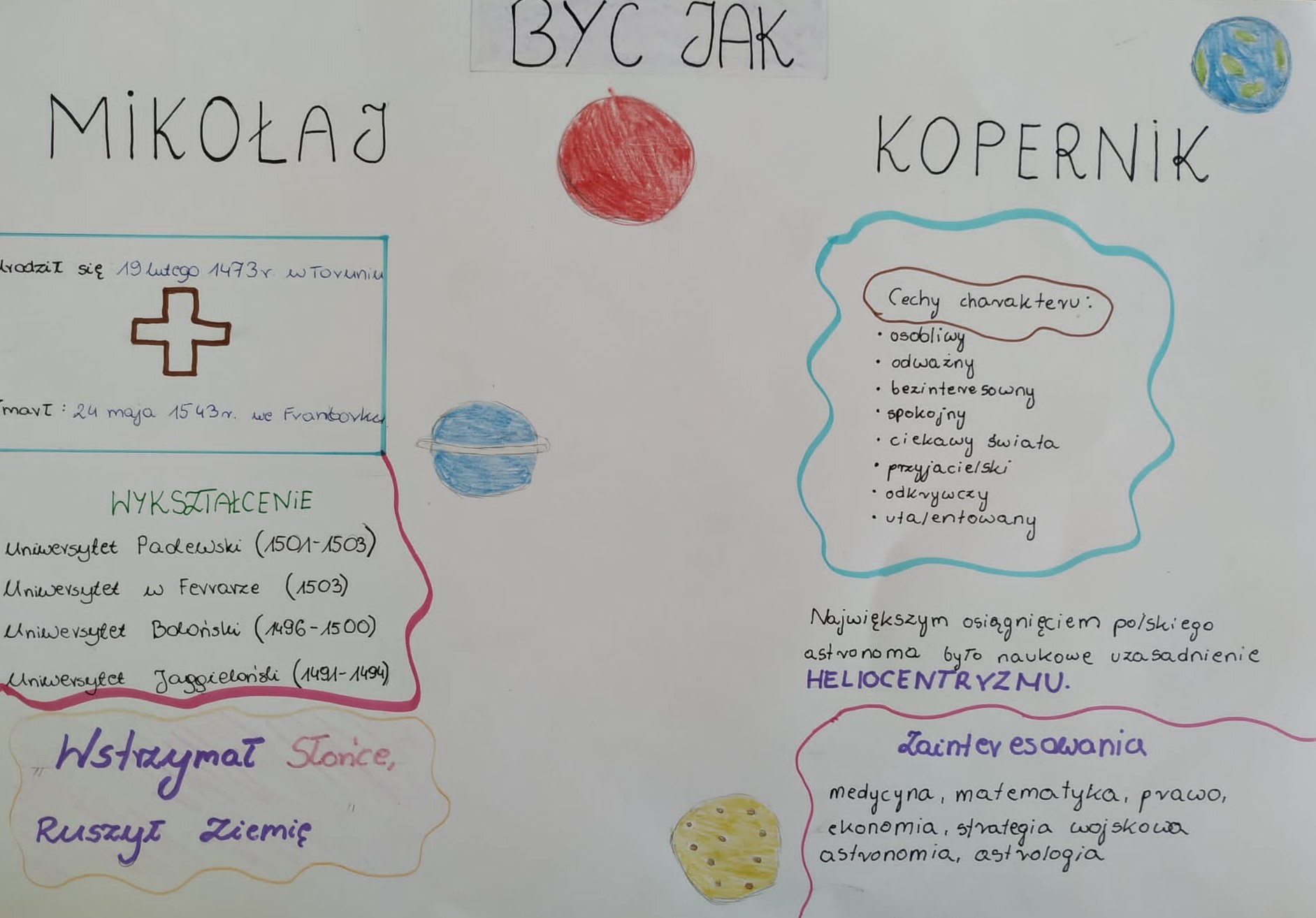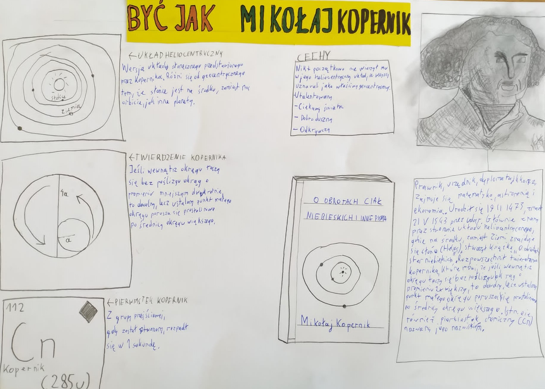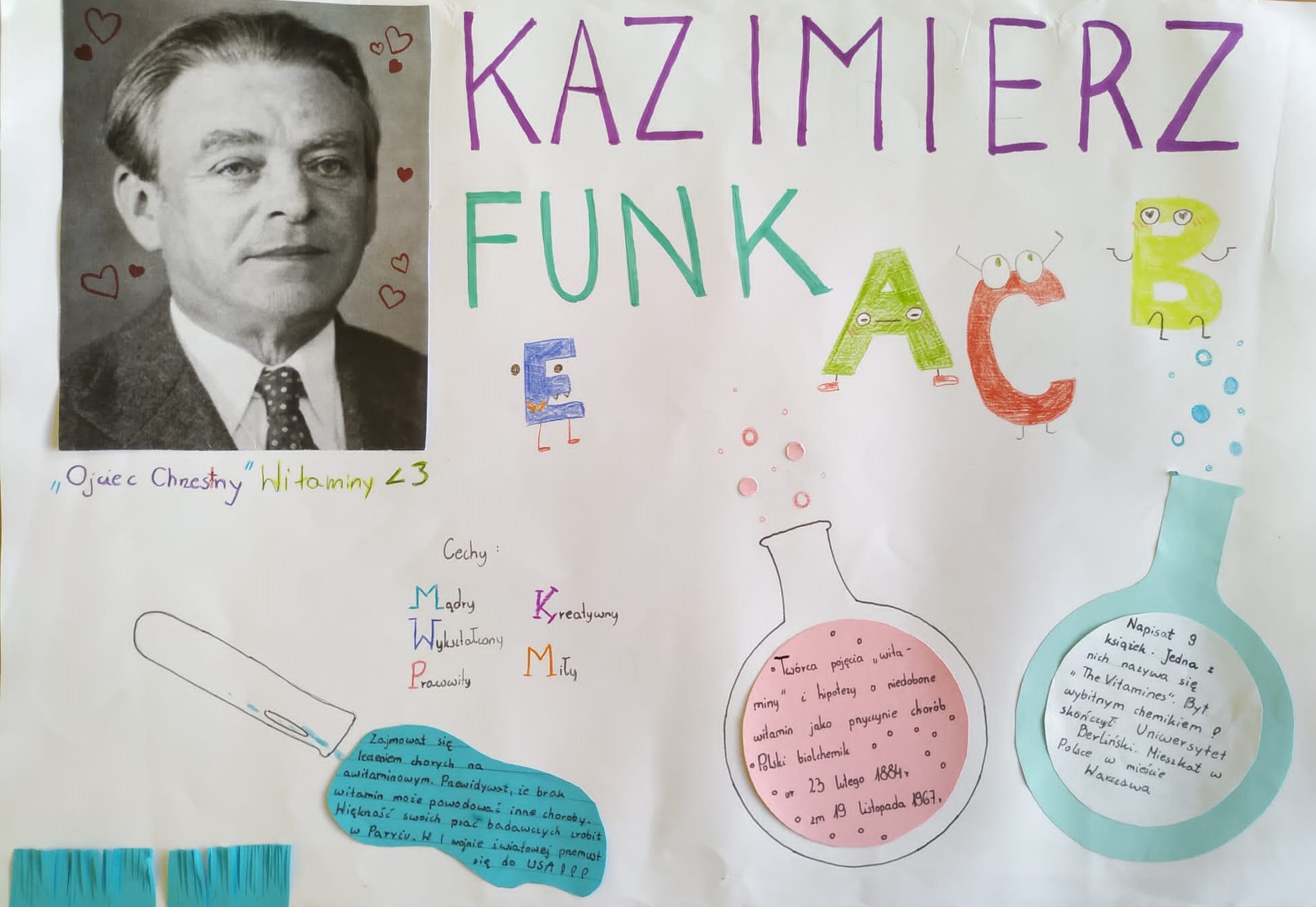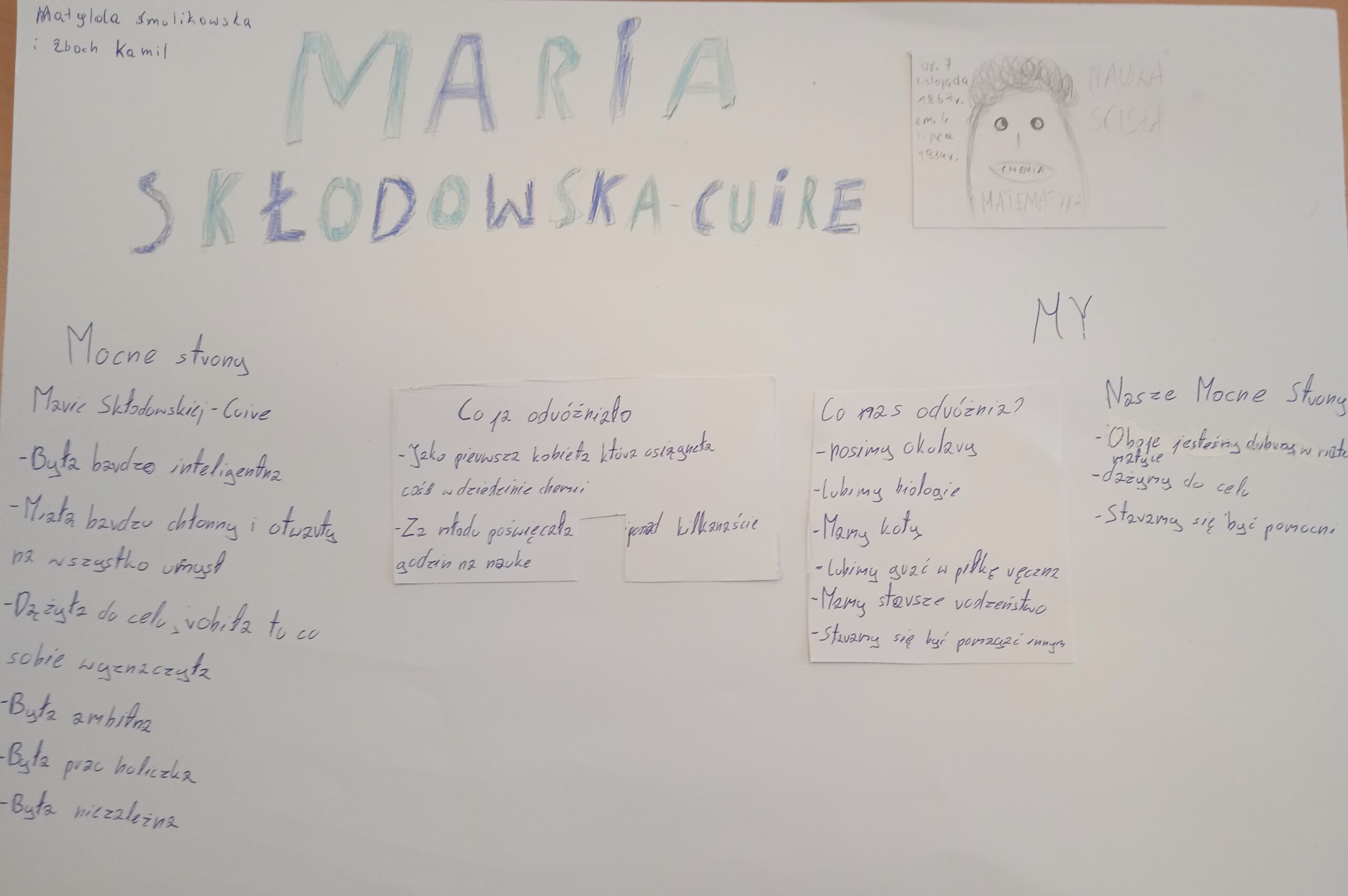 Wykonanie zadania konkursowego należało do uczniów klas siódmych. Wzięli w nim udział także inni uczniowie. Celem była prezentacja sylwetek Polek i Polaków wyróżniających się w przedmiotach ścisłych, poszukiwanie ich oraz swoich mocnych stron, które pomogą odnieść sukces. Prezentujemy prace uczniów w galerii pod tytułem: “Być jak…”.
