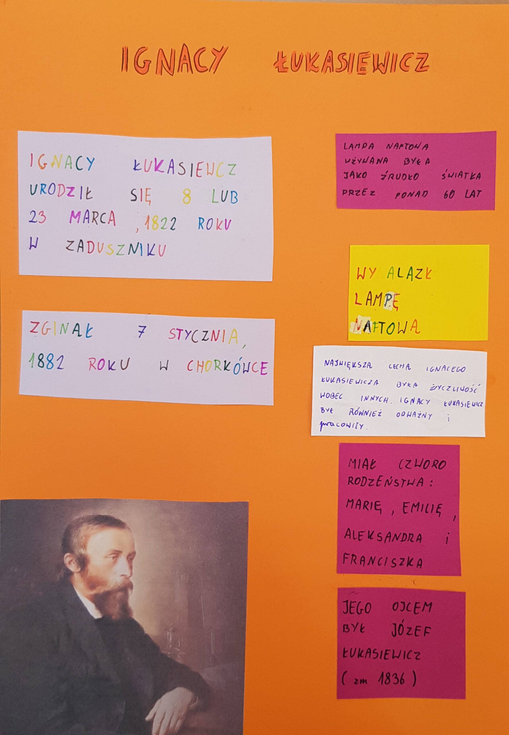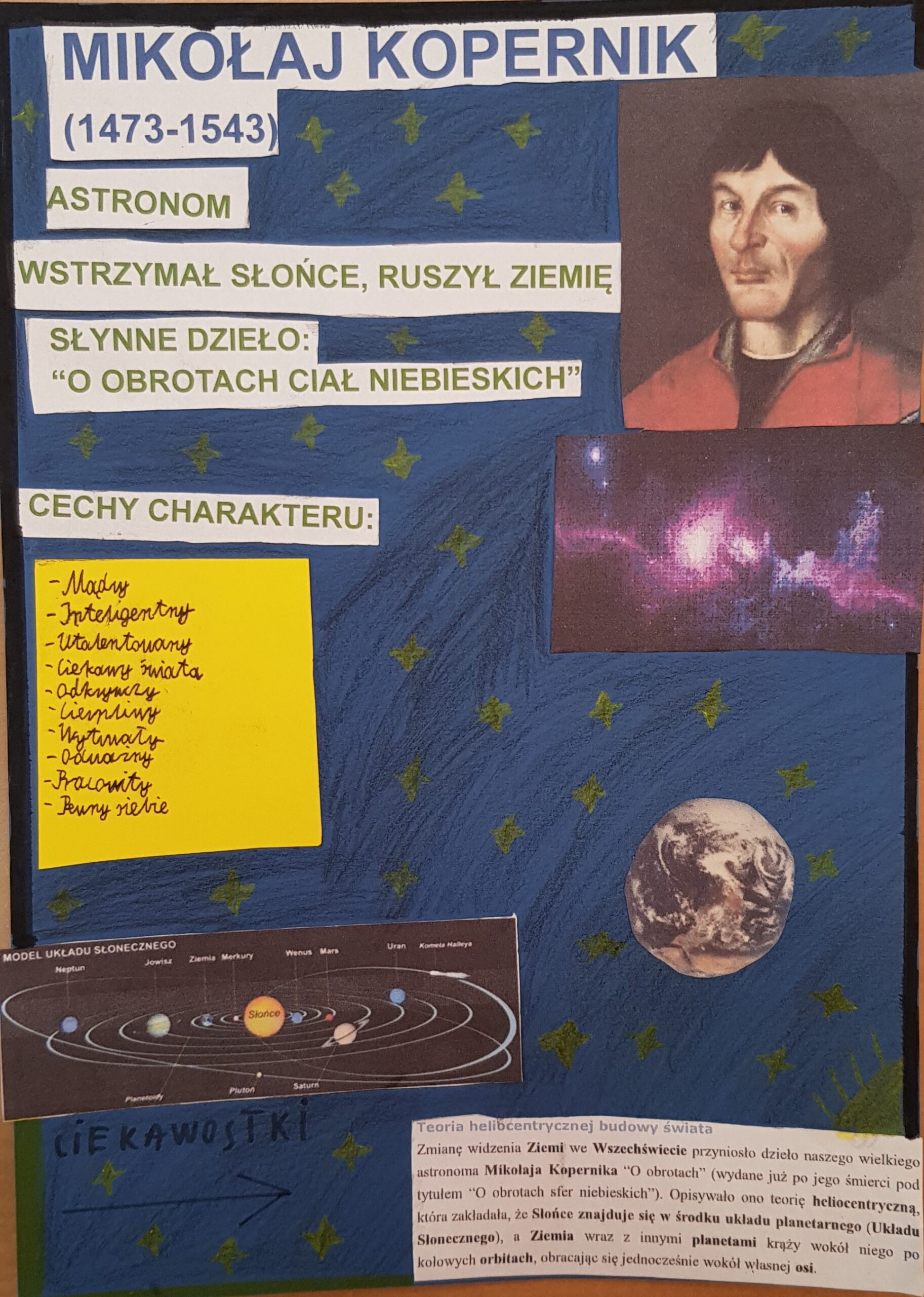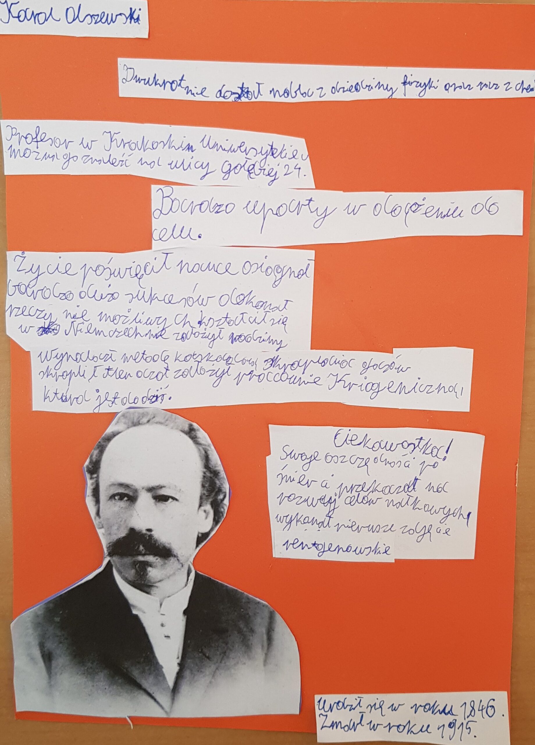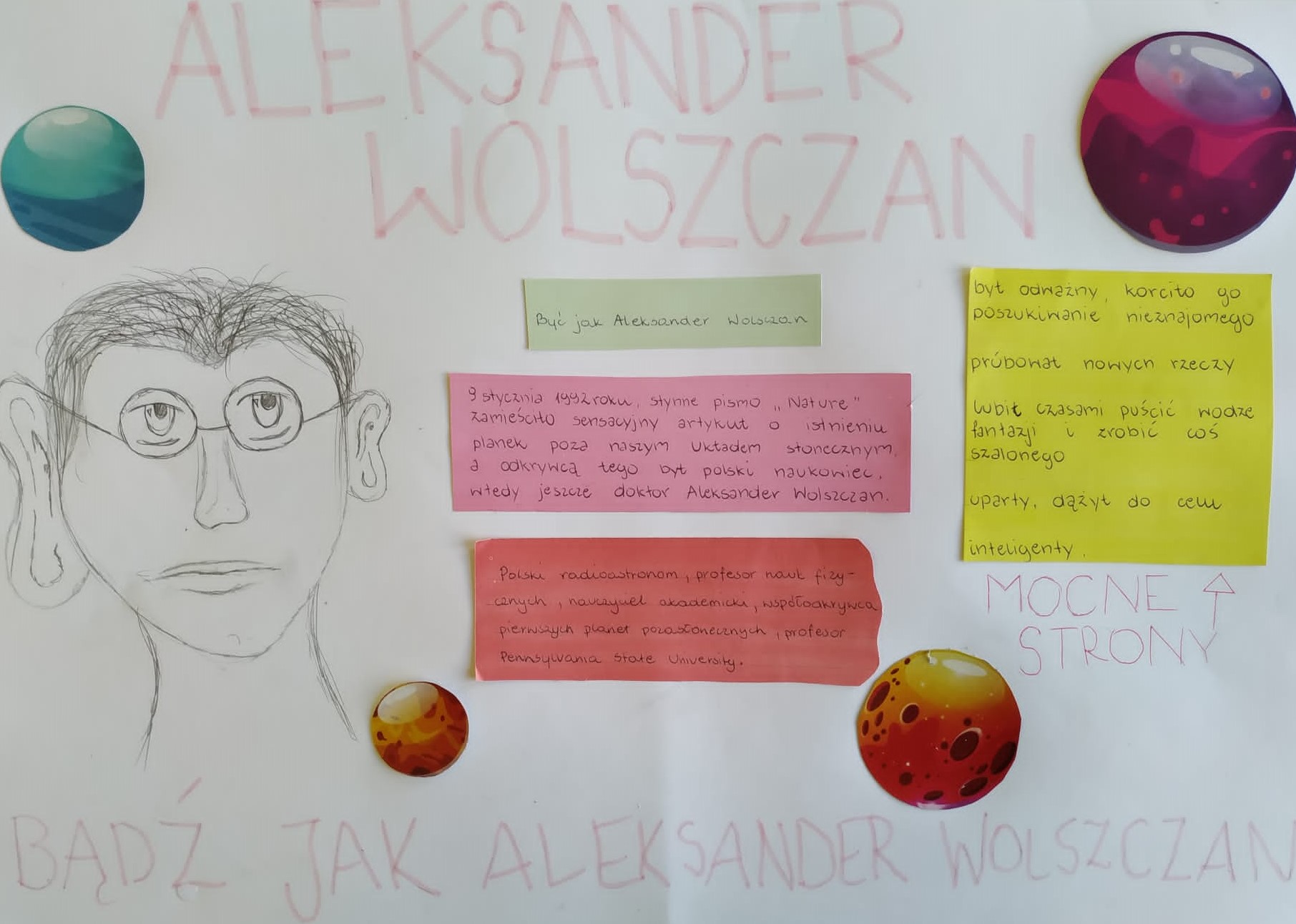 Wykonanie zadania konkursowego należało do uczniów klas siódmych. Wzięli w nim udział także inni uczniowie. Celem była prezentacja sylwetek Polek i Polaków wyróżniających się w przedmiotach ścisłych, poszukiwanie ich oraz swoich mocnych stron, które pomogą odnieść sukces. Prezentujemy prace uczniów w galerii pod tytułem: “Być jak…”.