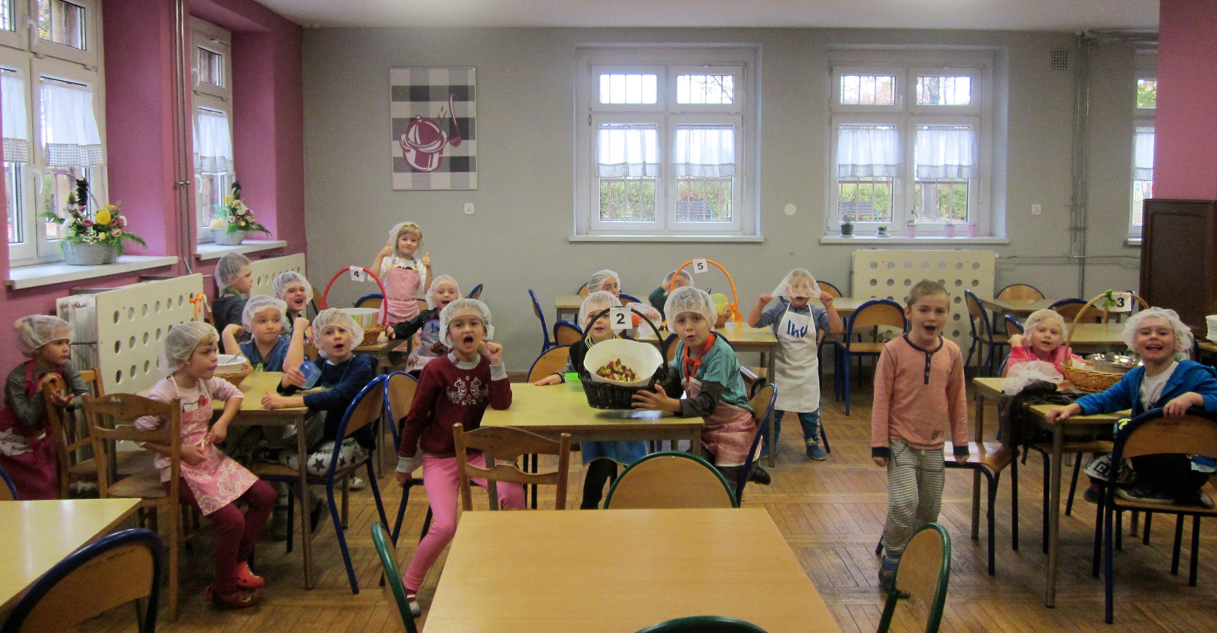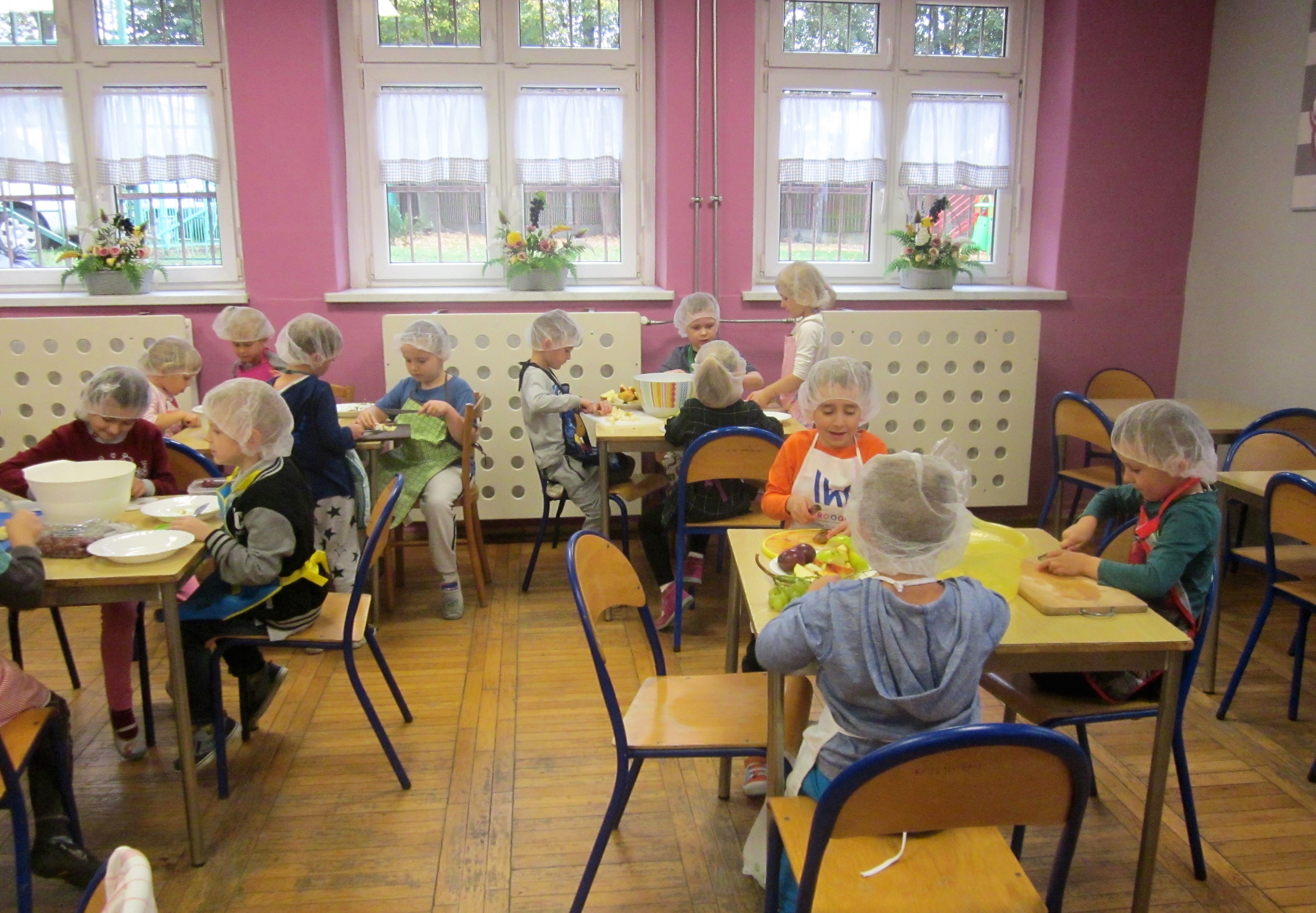 23 października 2018 r. dzieci z grupy 0a przygotowywały sałatkę z jesiennych owoców. Mali adepci sztuki kulinarnej uczyli się nie tylko kolejnych kroków przy wykonywaniu potrawy, ale także pracy w zespołach. Po obiedzie przyszedł czas na degustację. Wszystkie jesienne sałatki owocowe smakowały wyśmienicie.