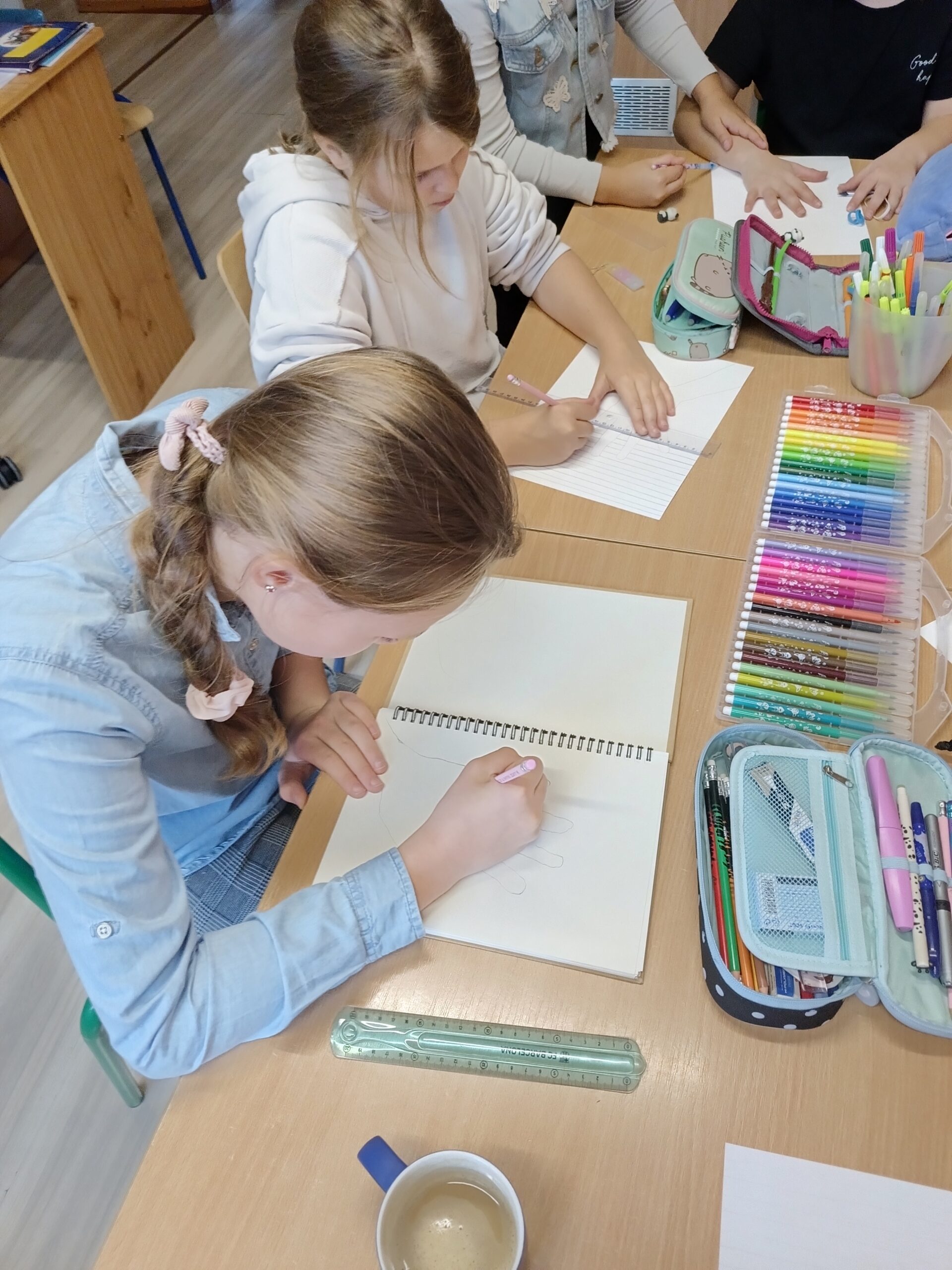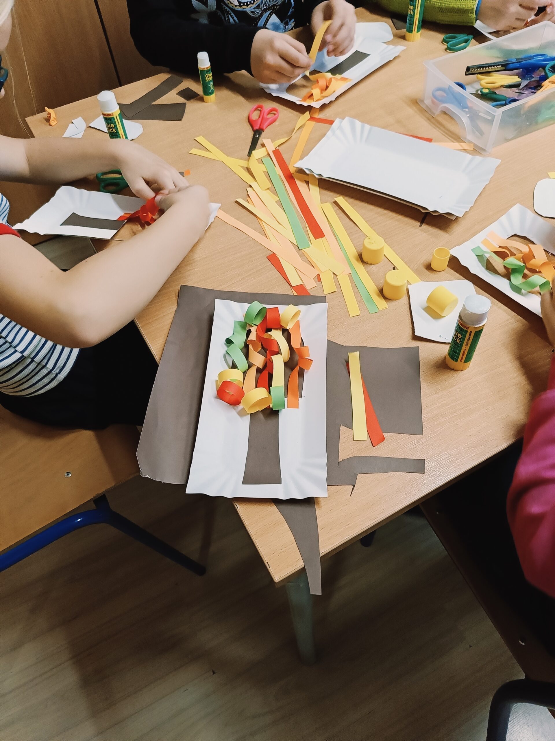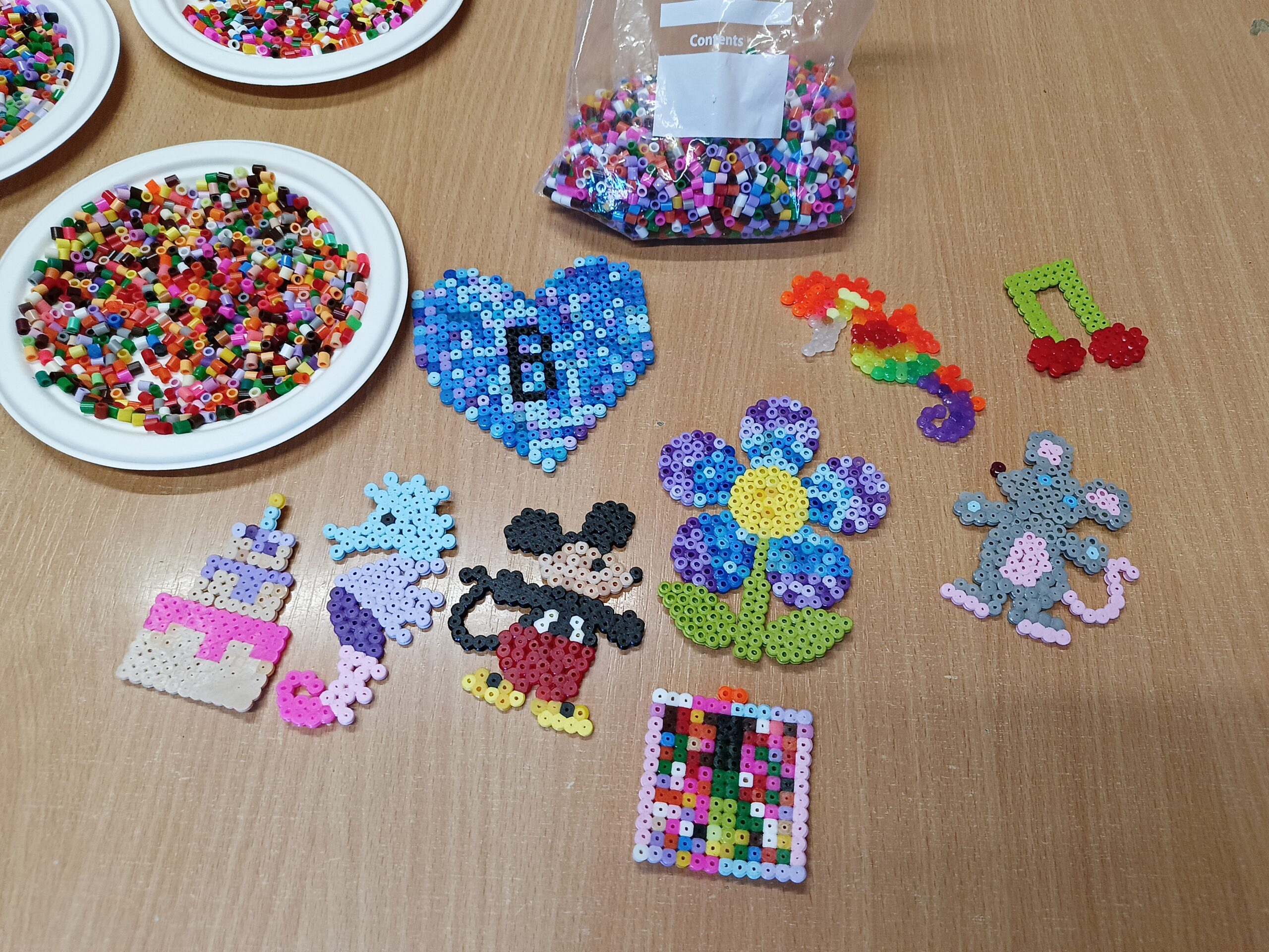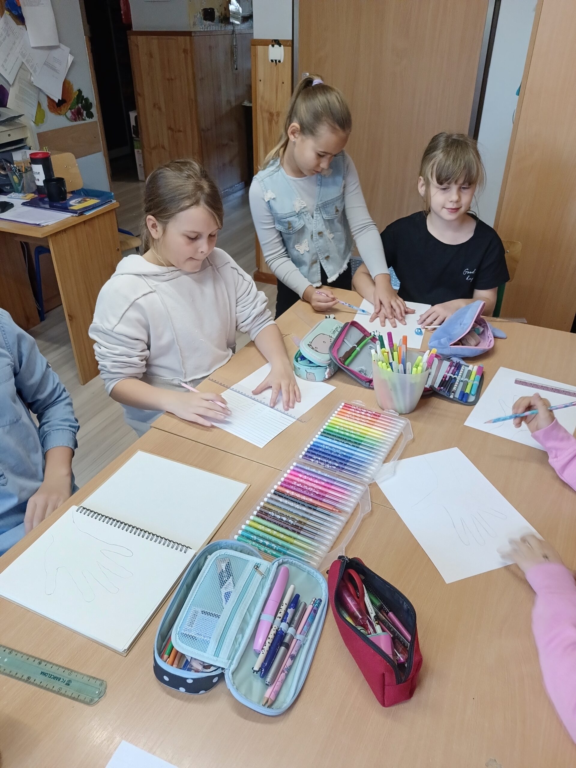 Co robiliśmy w tym semestrze: przestrzenne drzewa z papieru, rękę 3D w ołówku, bransoletki z kolorowych koralików, ozdoby na kiermasz świąteczny, gwiazdy z torebek śniadaniowych, obrazki z koralików zgrzewanych, breloki makramowe, wykonaliśmy również fotobudkę na Dzień Życzliwości. Obecnie szyjemy ręcznie poduszki.