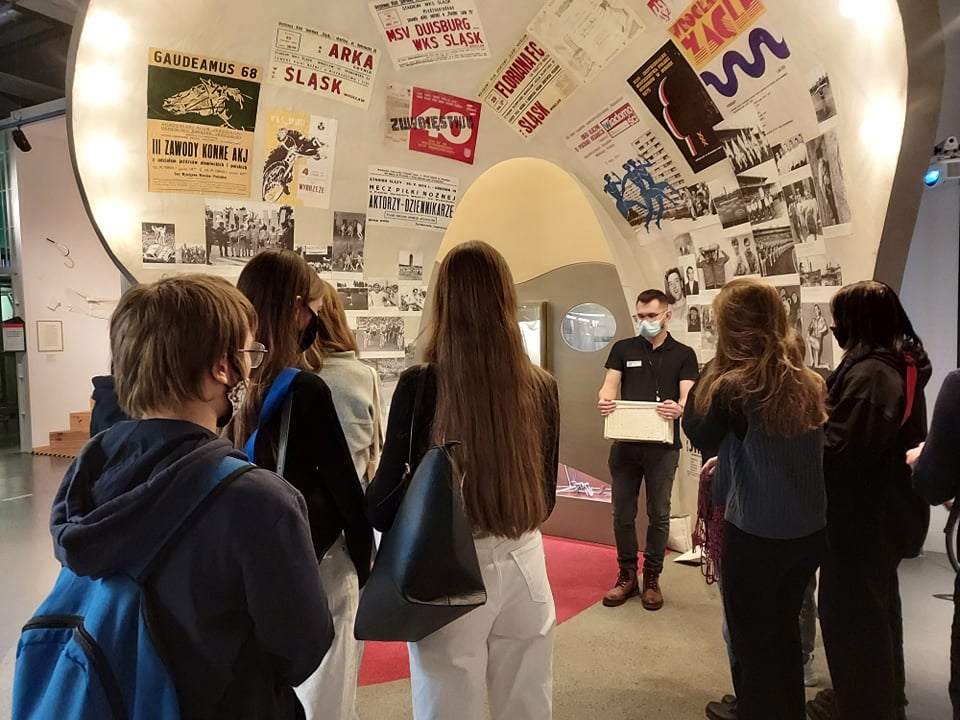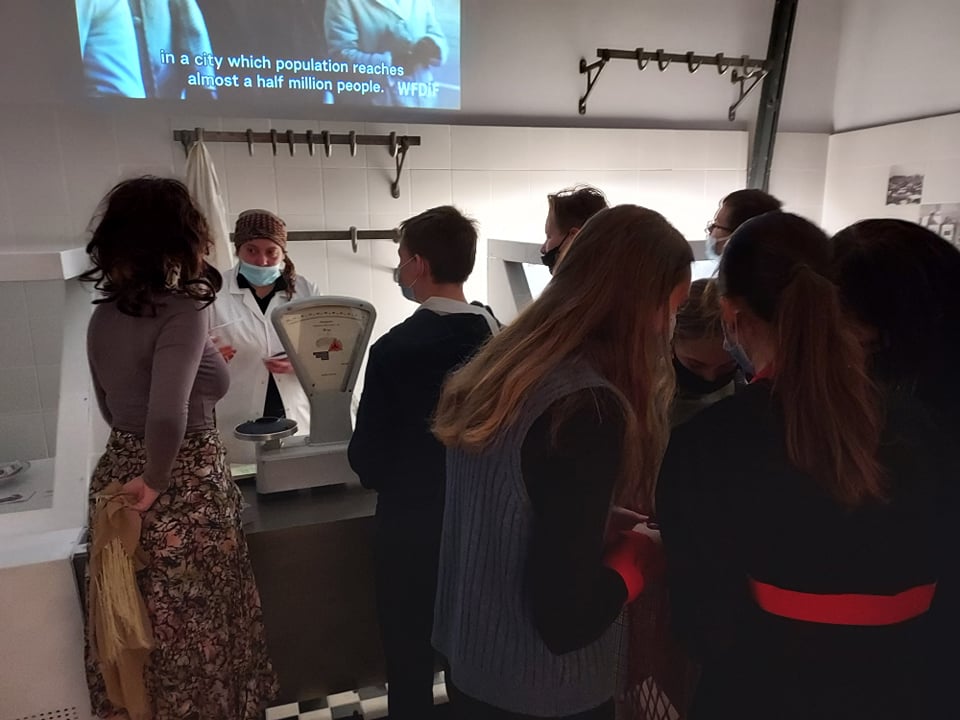 Uczniowie 7d i 8e wzięli udział w muzealnej lekcji historii. Podczas zwiedzania i warsztatów we wrocławskim Centrum Historii Zajezdnia poznali historię naszego miasta od czasów II wojny światowej po upadek PRL. W zwiedzaniu uczestniczyli czynnie, mogli poczuć się jak w dawnych czasach.