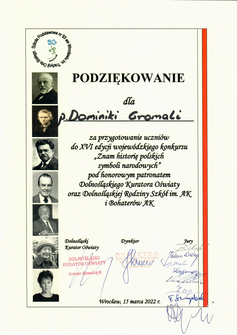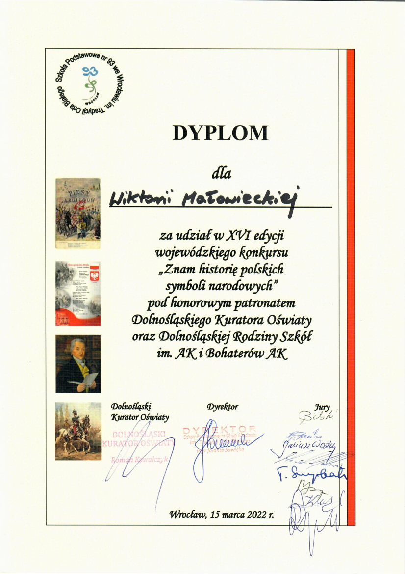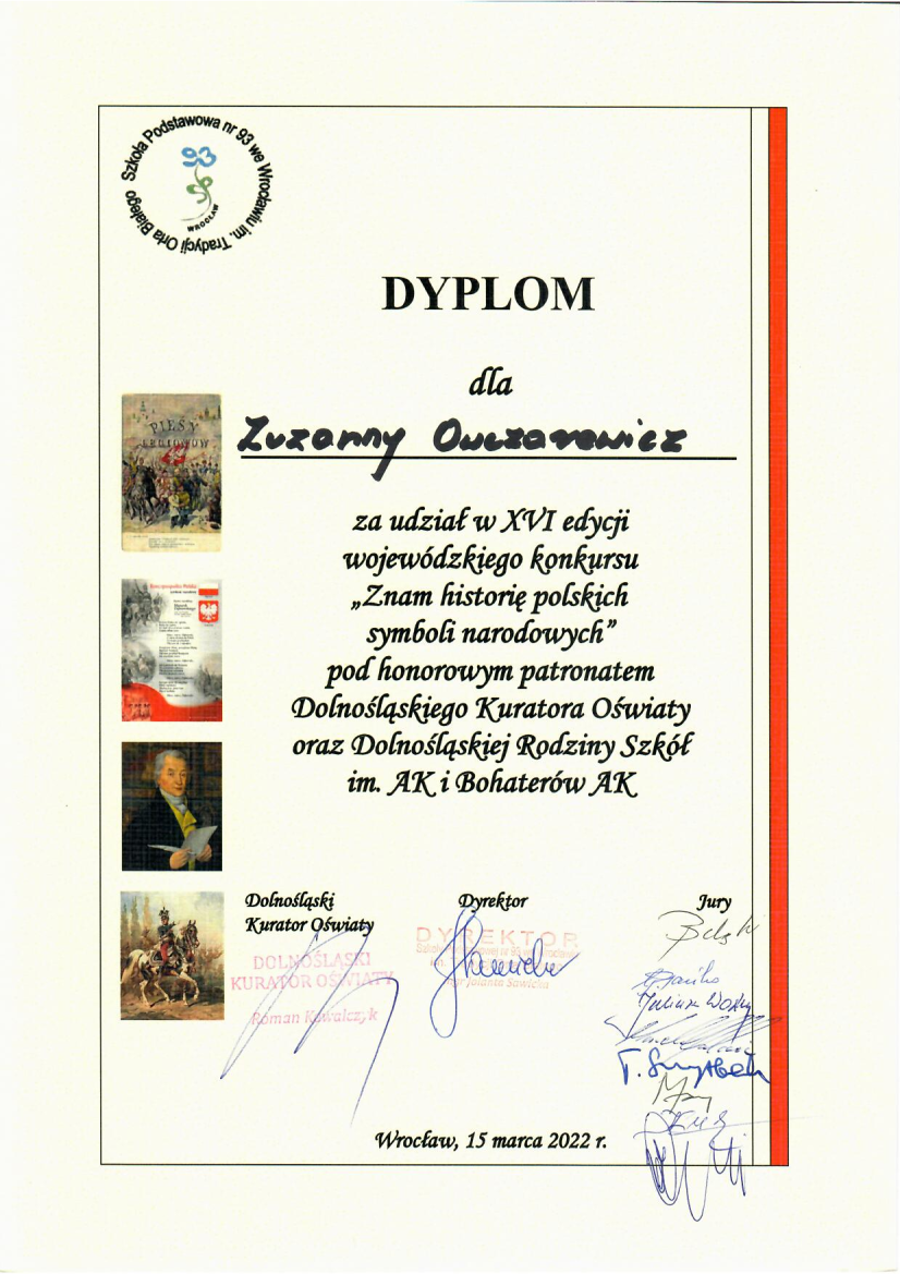 W SP 93 odbył się finał wojewódzkiego konkursu „Znam historię polskich symboli narodowych”.