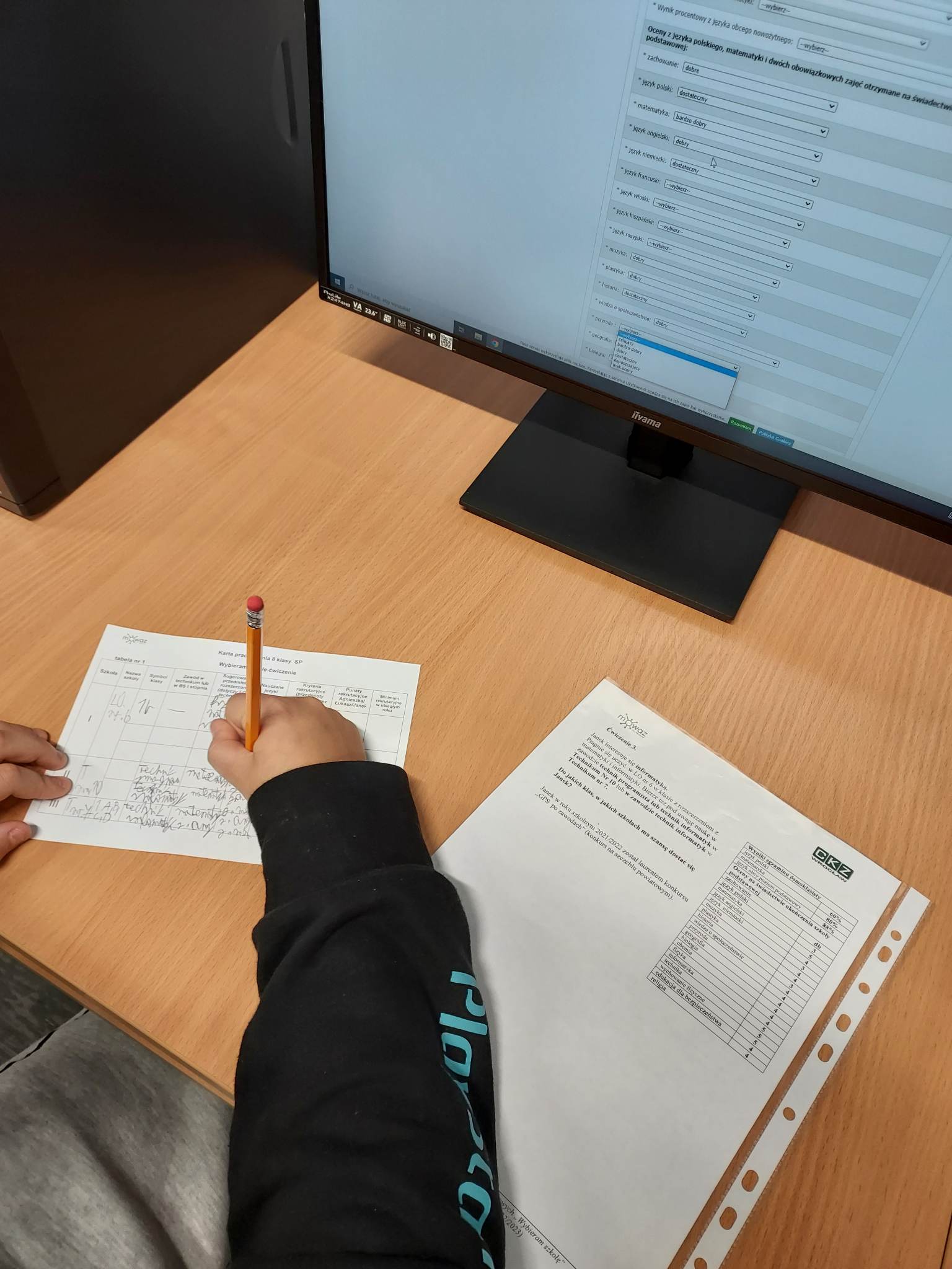 Uczniowie klas 8. biorą udział w wykładach i warsztatach Centrum Kształcenia Zawodowego we Wrocławiu, gdzie dowiadują się, jak wygląda rekrutacja do szkół ponadpodstawowych. Nie zamierzają swojej przyszłości zostawić przypadkowi, a wręcz przeciwnie. Zapoznają się z ofertą wrocławskich szkół, sprawdzają, na ile punktów każdy z nich może liczyć, porównują swoje cele ze swoimi możliwościami. Teraz wiedzą, na co mają zwracać szczególną uwagę, żeby dostać się do wymarzonych szkół. Uczą się pilnie, ponieważ egzamin tuż tuż…
