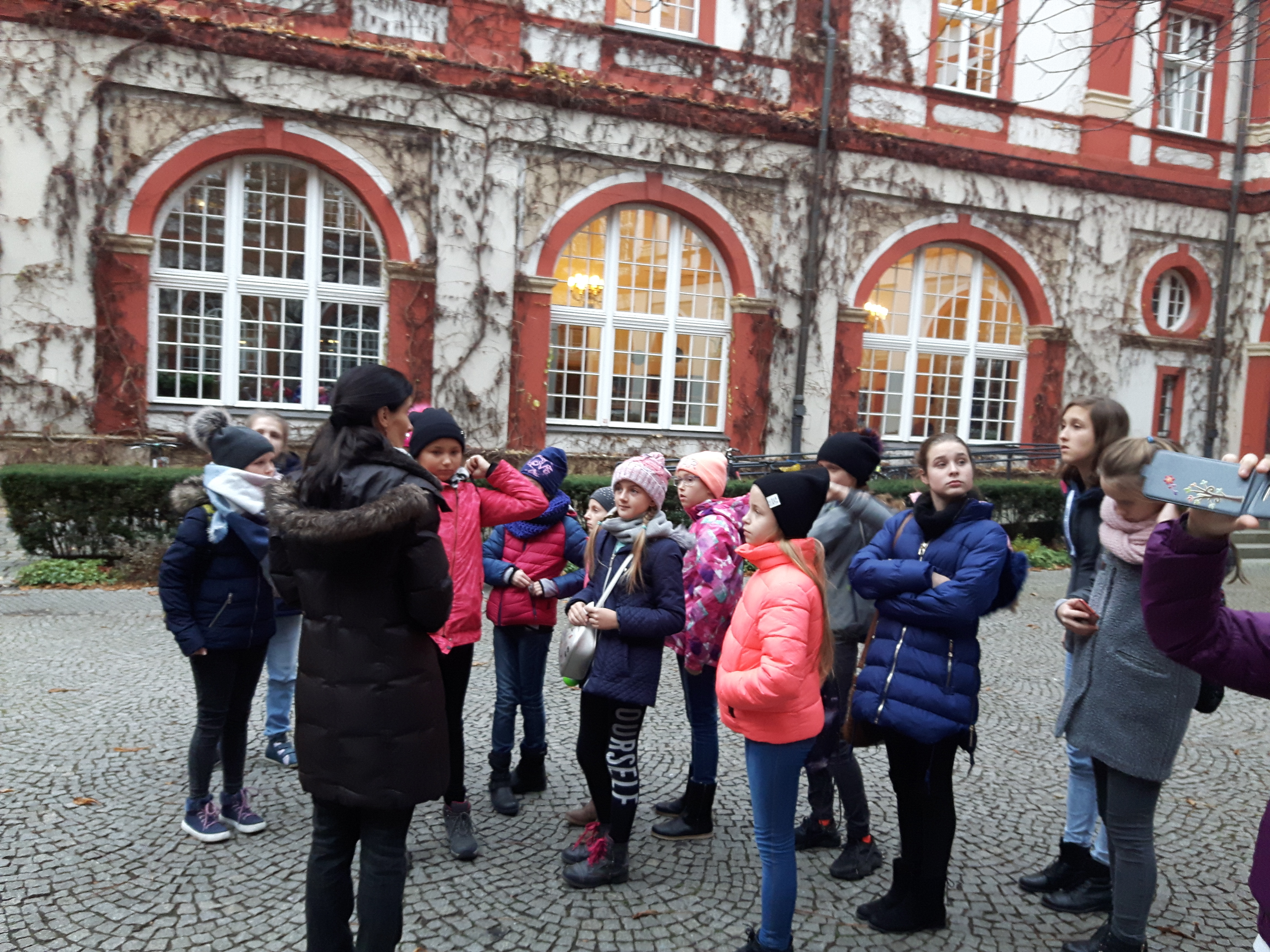 28 listopada 2017 r. grupa uczennic z klas 4b, 5a,b, 7c naszej szkoły wzięła udział w zajęciach edukacyjnych w Ossolineum. Dziewczyny poznały genezę księgozbioru Ossolińskich, historię biblioteki oraz ciekawostki dotyczące eksponatów, niektóre z nich mogły obejrzeć na własne oczy na wystawie. Najciekawsze z nich to: pukiel włosów Juliusza Słowackiego, zielnik Elizy Orzeszkowej, miniaturowe książki i wiele innych. Uwagę zwróciły także pięknie odrestaurowany budynek i wnętrza biblioteki -zwłaszcza sala pod kopułą. W drodze zajrzałyśmy również na jarmark w rynku 🙂