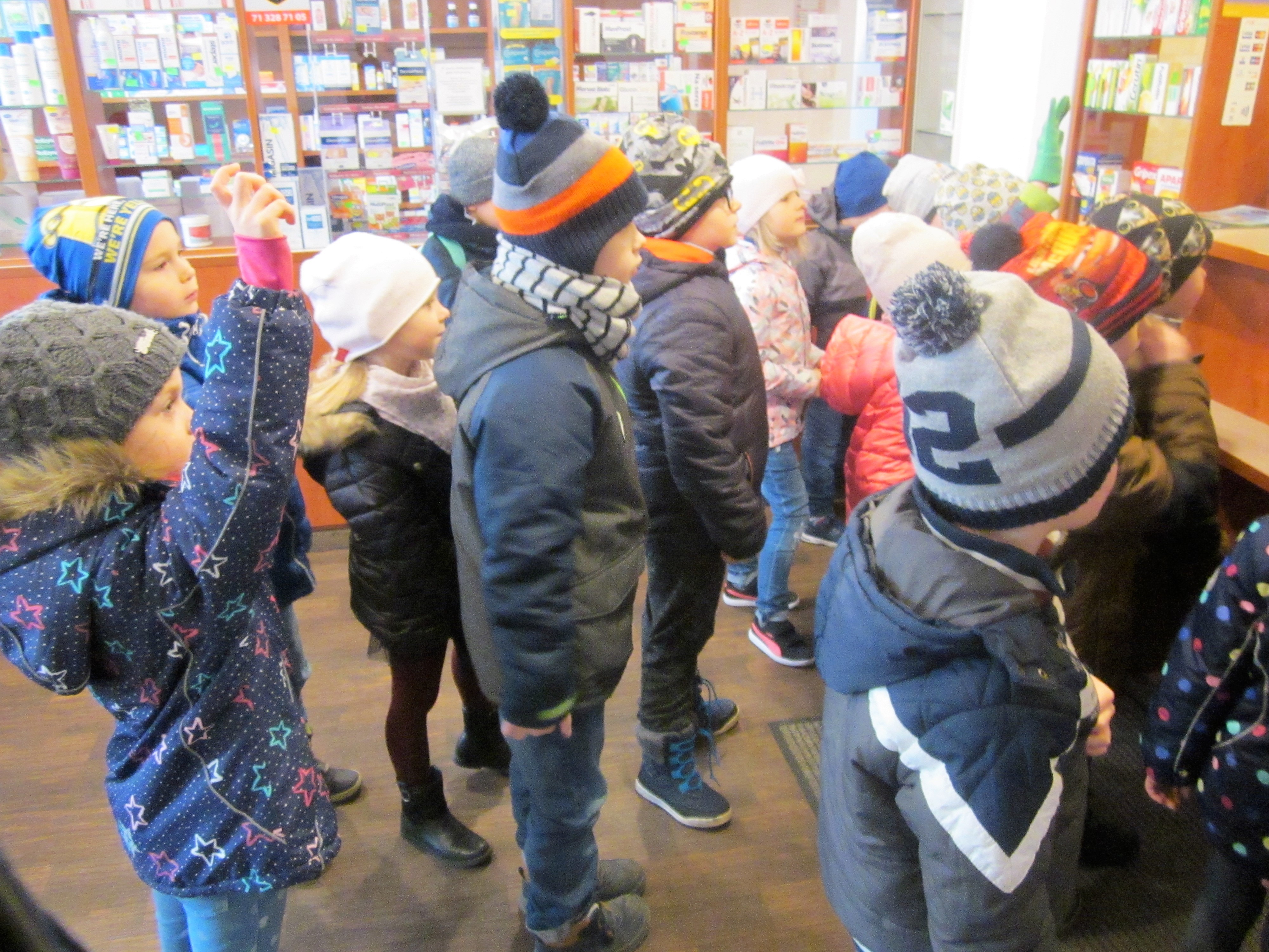 20.02.2019 roku grupa 0a odwiedziła pobliską aptekę. Dzięki uprzejmości pracujących w niej pań dzieci dowiedziały się m.in. na czym polega praca farmaceuty, jakie umiejętności trzeba doskonalić, aby wykonywać ten zawód, kto samodzielnie może kupować lekarstwa oraz gdzie należy wyrzucać przeterminowane leki. Paniom farmaceutkom bardzo dziękujemy za tę lekcję.