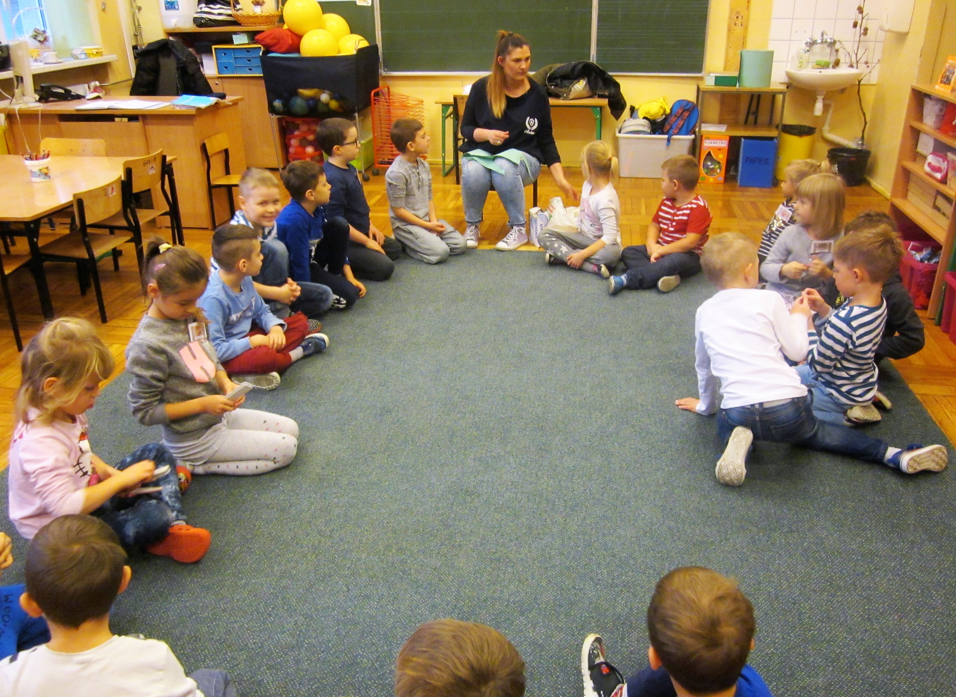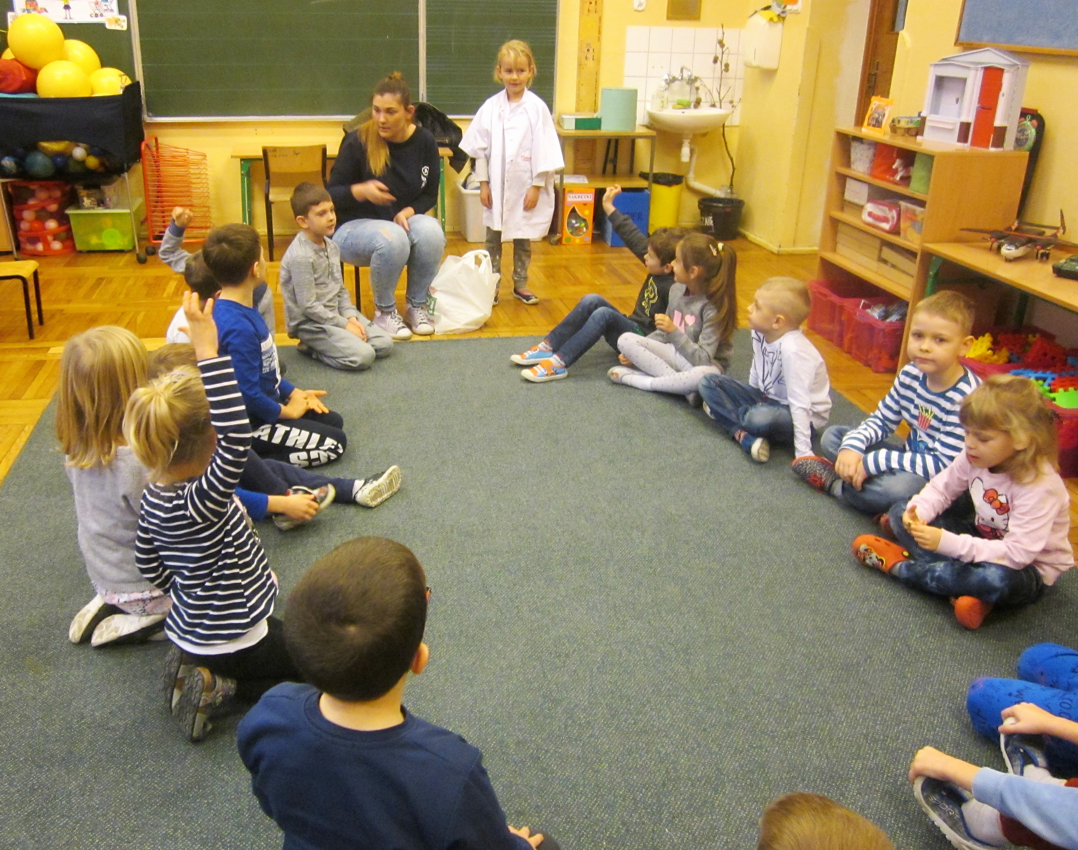 20.11.2018 roku grupę 0a odwiedziła mama jednego z uczniów i opowiedziała dzieciom o swojej pracy. Mali słuchacze dowiedzieli się m.in. czym zajmuje się kosmetyczka i jakie umiejętności trzeba rozwijać, aby móc wykonywać ten zawód. Uczniowie mieli okazję zobaczyć jak zdobi się paznokcie, a także poznać przybory, wykorzystywane przez kosmetyczkę w pracy.