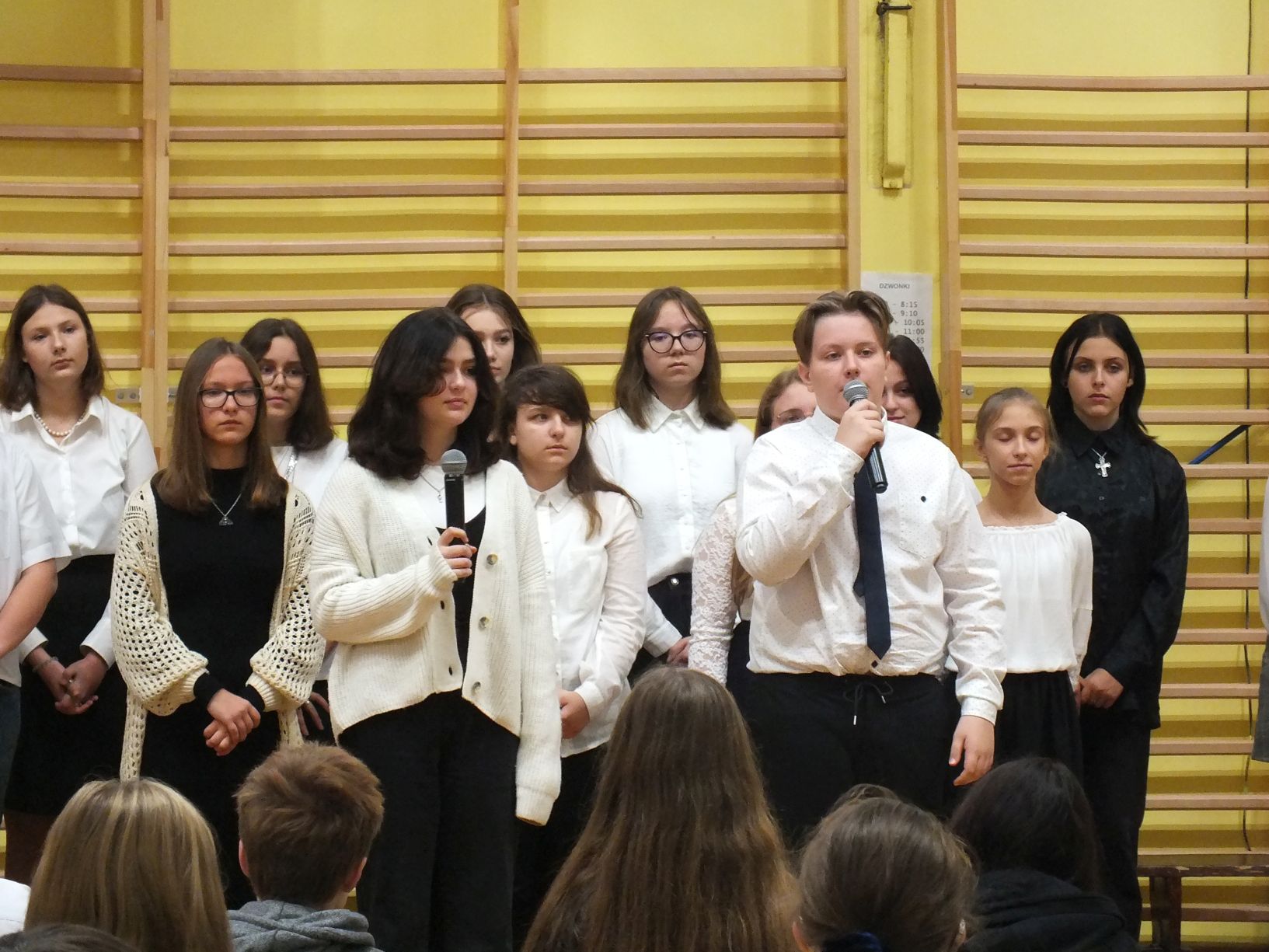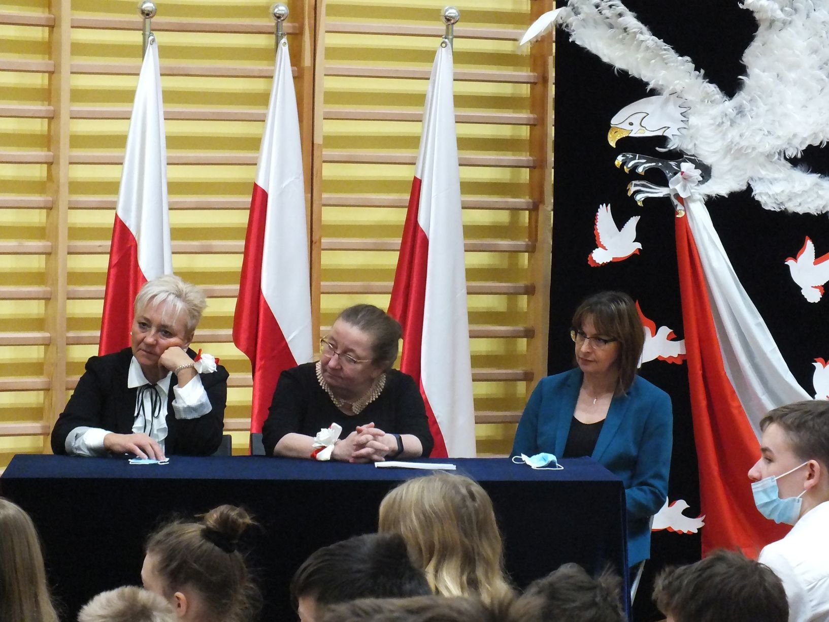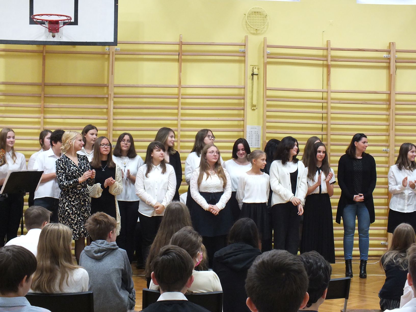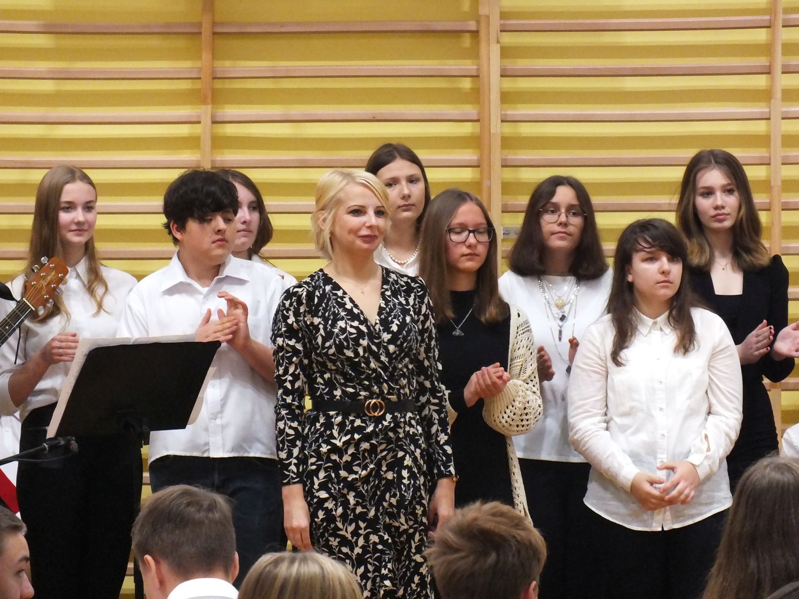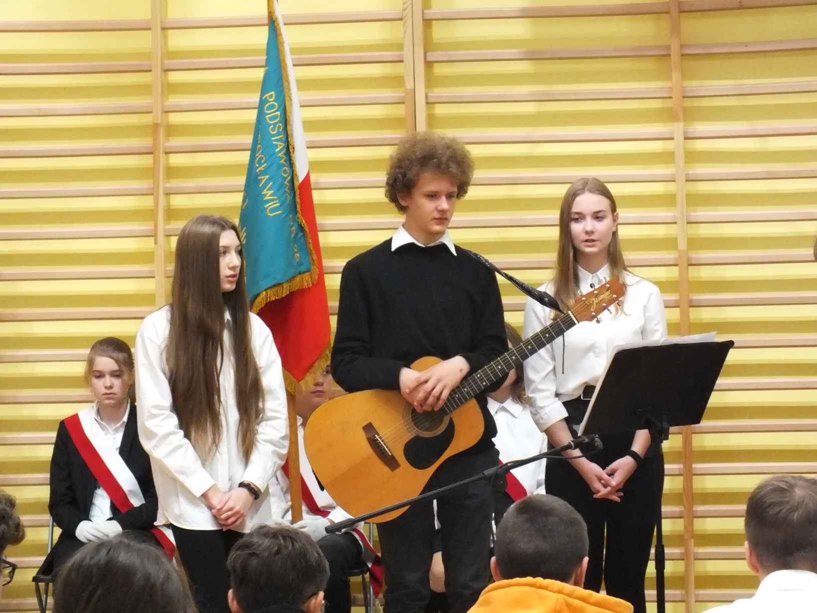 We wtorek 9-11-2021 uczniowie klas 8a i 8b przy wsparciu p. Dominiki Gromali i p. Alicji Wiłkowskiej przygotowali apel z okazji 103. rocznicy odzyskania przez Polskę niepodległości. Na scenie, udekorowanej przez p. Małgorzatę Donarską-Dubaj, pojawiły się talenty naszej szkoły. Usłyszeliśmy wzruszające wiersze i piosenki patriotyczne. Uczniowie naszej szkoły są niezwykle uzdolnieni artystycznie, a my mogliśmy docenić umiejętności Amelki (pianino i recytacja), Grzesia (gitara i wokal), Julii, Szymona, Zuzi i Zuzi, Hani, Alony oraz Wiki (śpiew i recytacja), Zuzi, Mai, Huberta, Ireny, Igi, Oli, Wiki oraz Illi (recytacja). Kto był – docenił, kto nie był – niech żałuje.