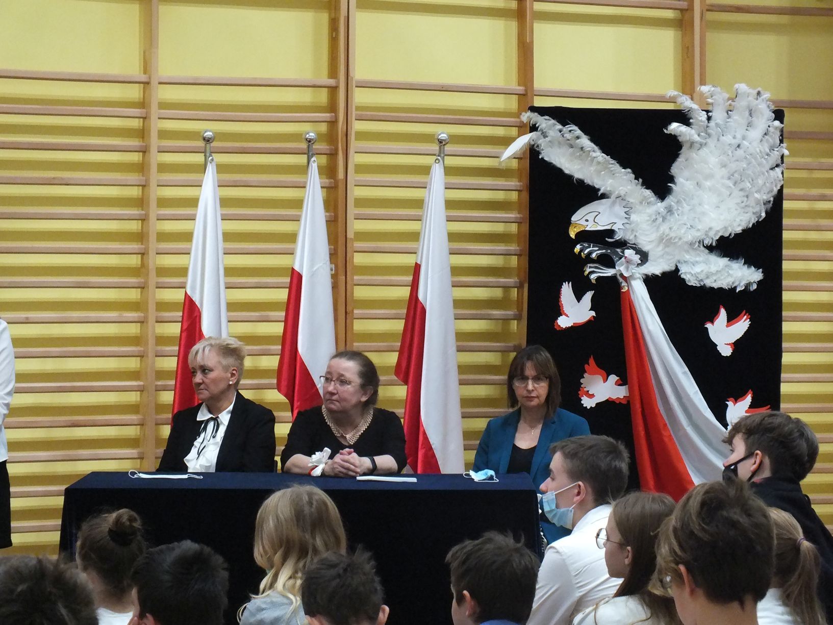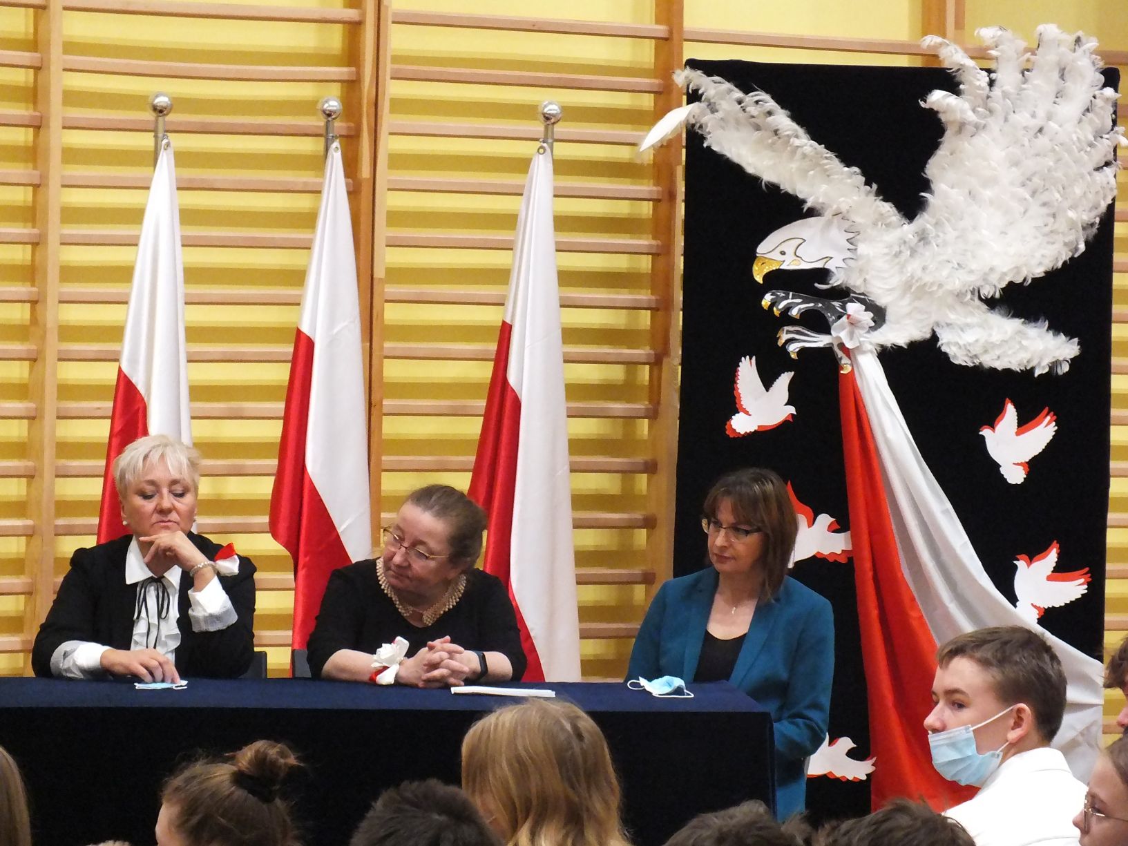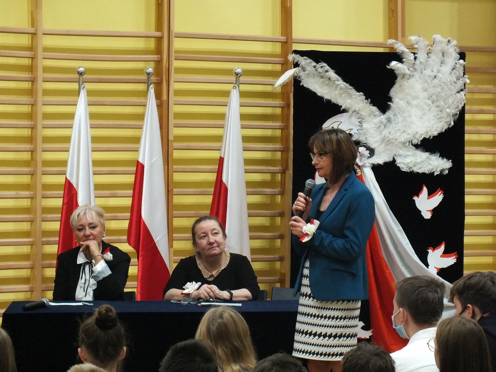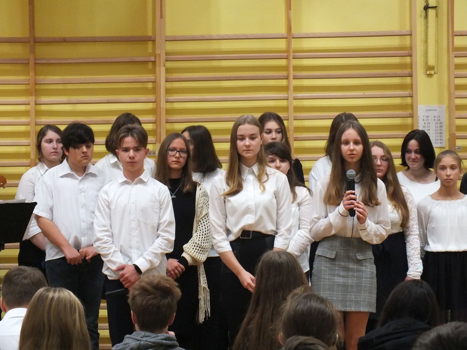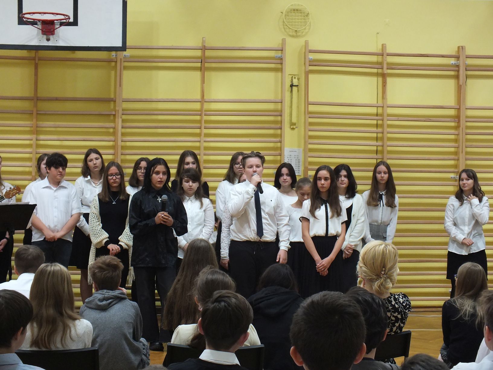 We wtorek 9-11-2021 uczniowie klas 8a i 8b przy wsparciu p. Dominiki Gromali i p. Alicji Wiłkowskiej przygotowali apel z okazji 103. rocznicy odzyskania przez Polskę niepodległości. Na scenie, udekorowanej przez p. Małgorzatę Donarską-Dubaj, pojawiły się talenty naszej szkoły. Usłyszeliśmy wzruszające wiersze i piosenki patriotyczne. Uczniowie naszej szkoły są niezwykle uzdolnieni artystycznie, a my mogliśmy docenić umiejętności Amelki (pianino i recytacja), Grzesia (gitara i wokal), Julii, Szymona, Zuzi i Zuzi, Hani, Alony oraz Wiki (śpiew i recytacja), Zuzi, Mai, Huberta, Ireny, Igi, Oli, Wiki oraz Illi (recytacja). Kto był – docenił, kto nie był – niech żałuje.