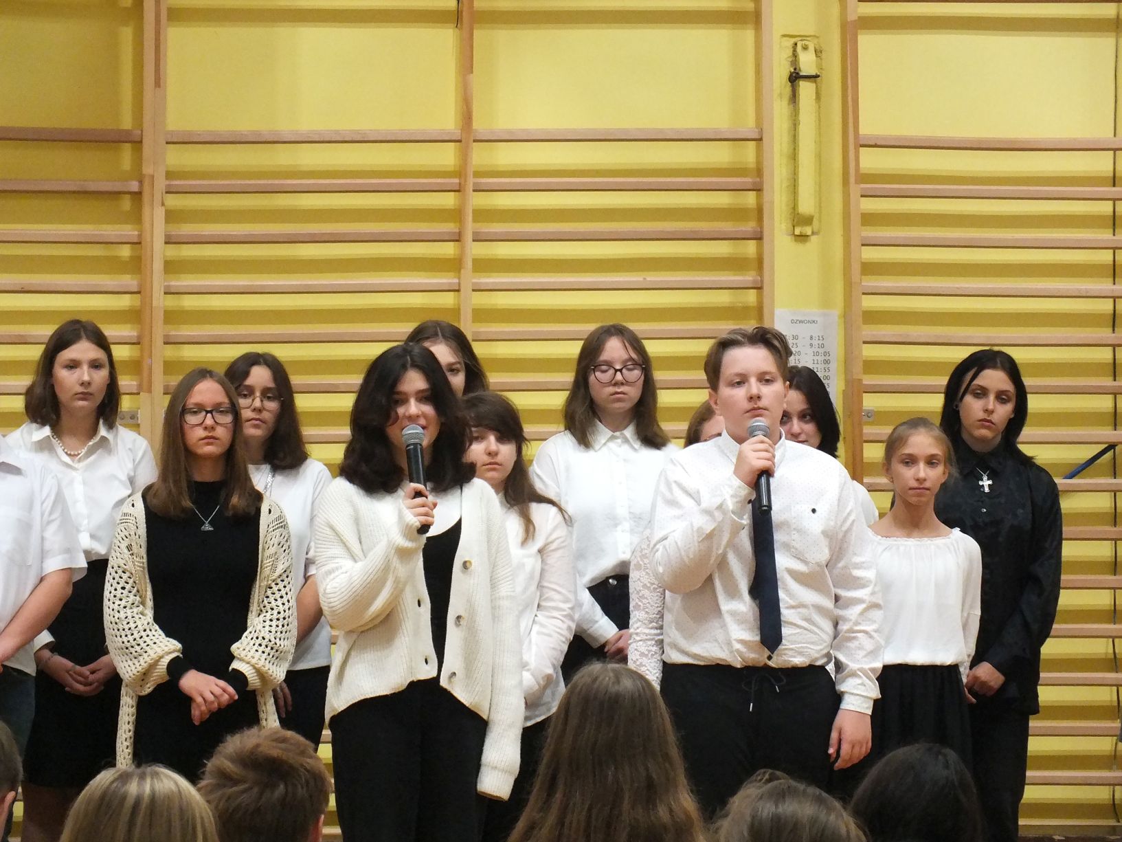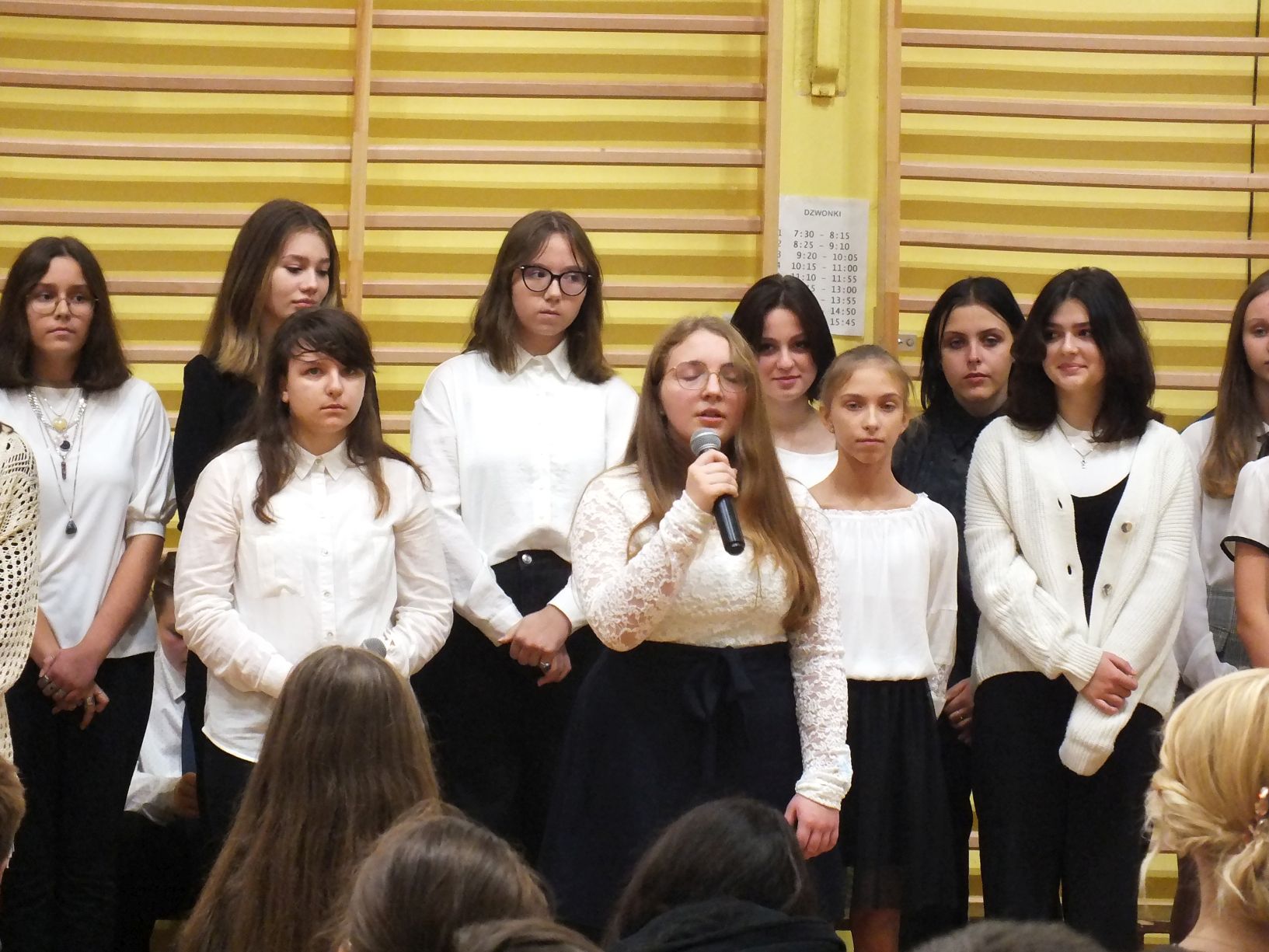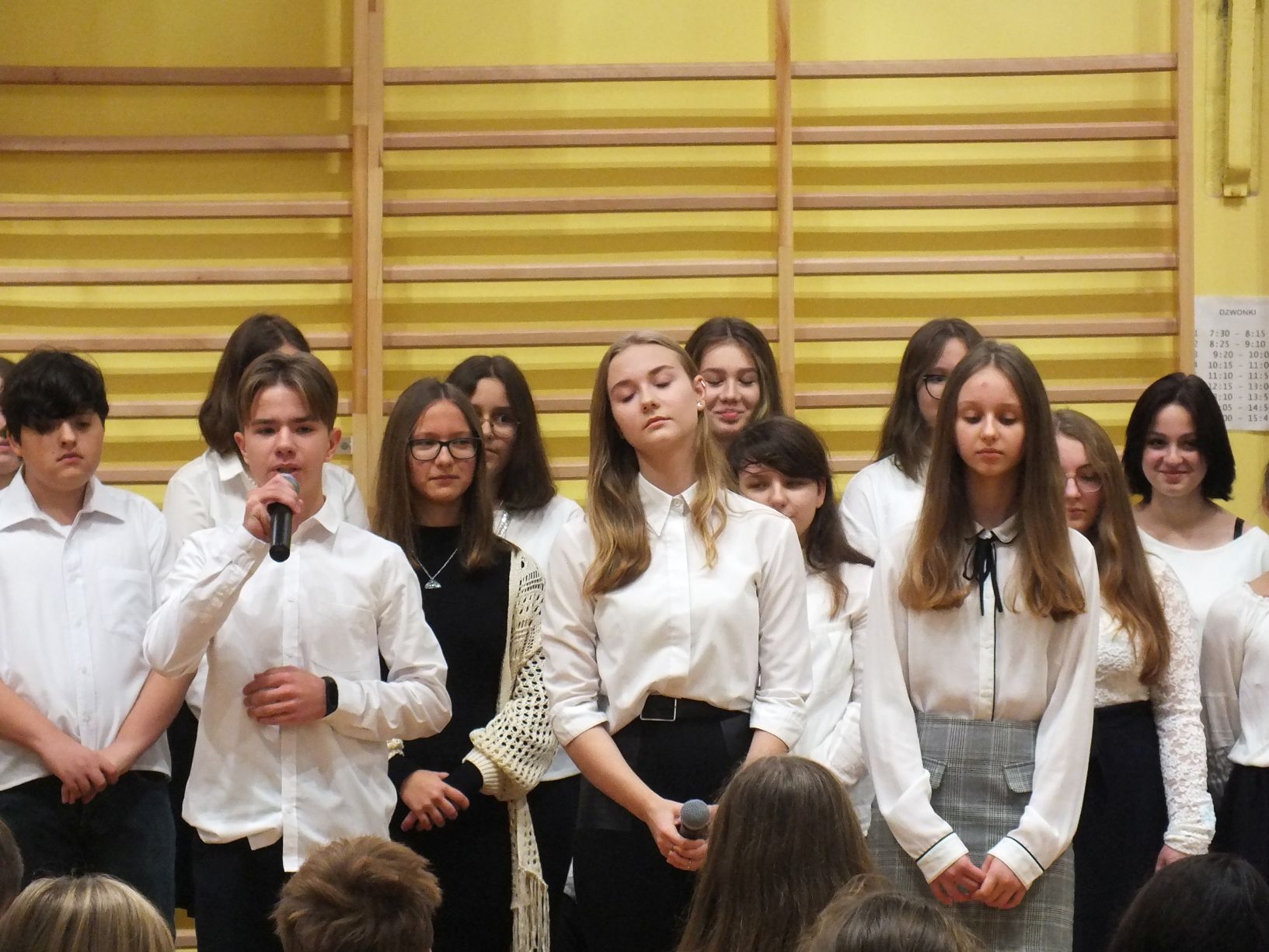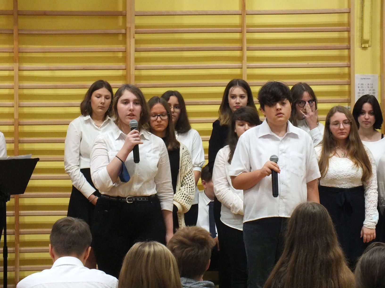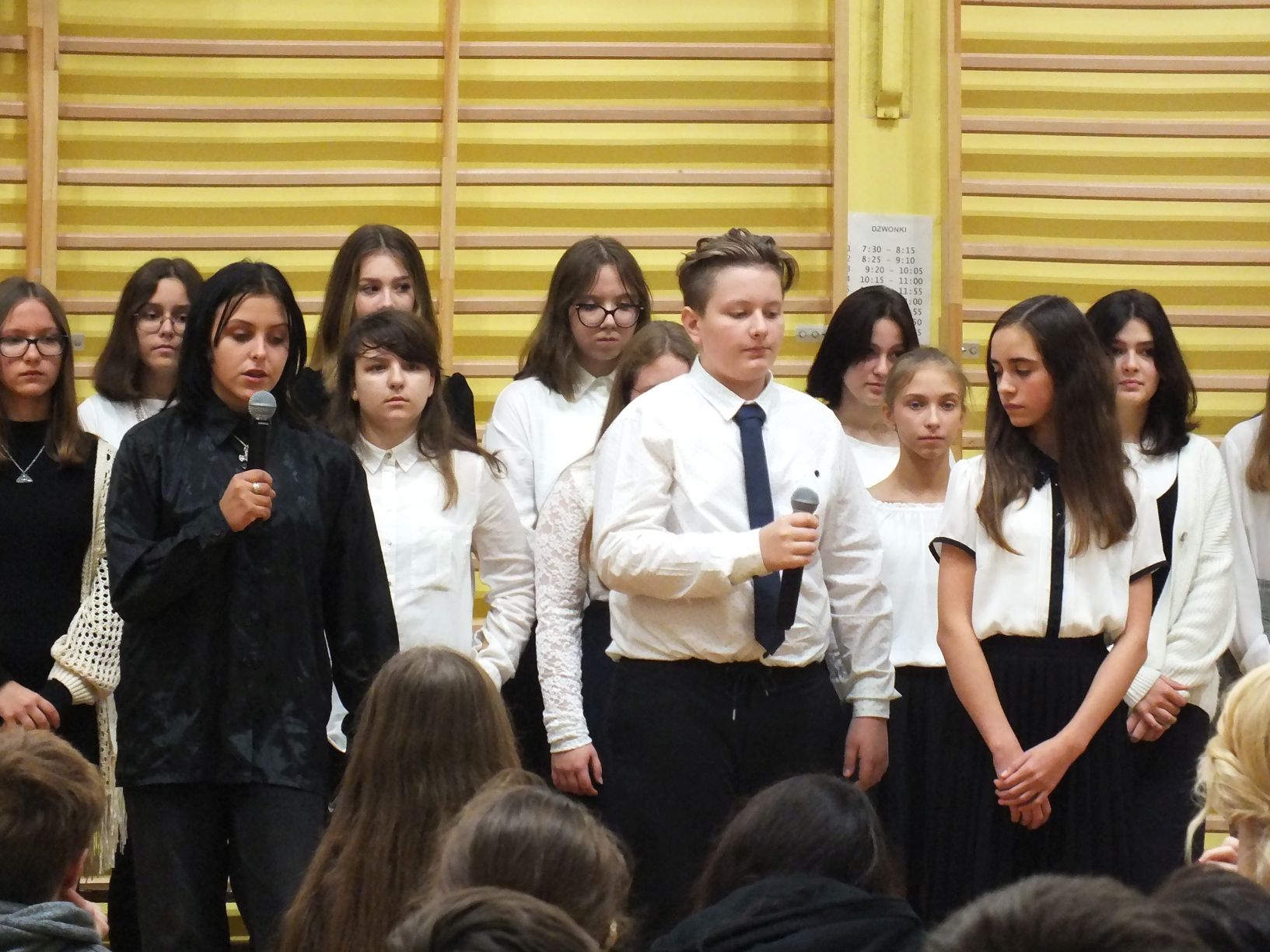 We wtorek 9-11-2021 uczniowie klas 8a i 8b przy wsparciu p. Dominiki Gromali i p. Alicji Wiłkowskiej przygotowali apel z okazji 103. rocznicy odzyskania przez Polskę niepodległości. Na scenie, udekorowanej przez p. Małgorzatę Donarską-Dubaj, pojawiły się talenty naszej szkoły. Usłyszeliśmy wzruszające wiersze i piosenki patriotyczne. Uczniowie naszej szkoły są niezwykle uzdolnieni artystycznie, a my mogliśmy docenić umiejętności Amelki (pianino i recytacja), Grzesia (gitara i wokal), Julii, Szymona, Zuzi i Zuzi, Hani, Alony oraz Wiki (śpiew i recytacja), Zuzi, Mai, Huberta, Ireny, Igi, Oli, Wiki oraz Illi (recytacja). Kto był – docenił, kto nie był – niech żałuje.