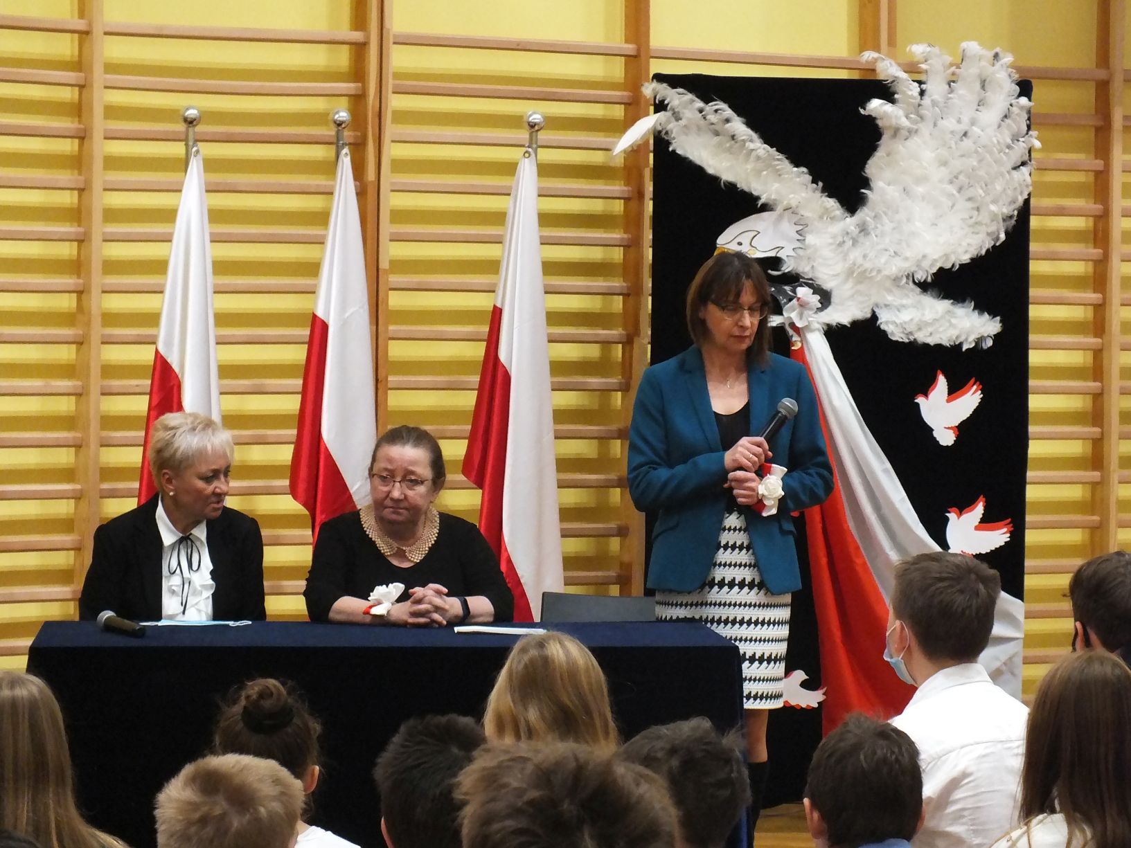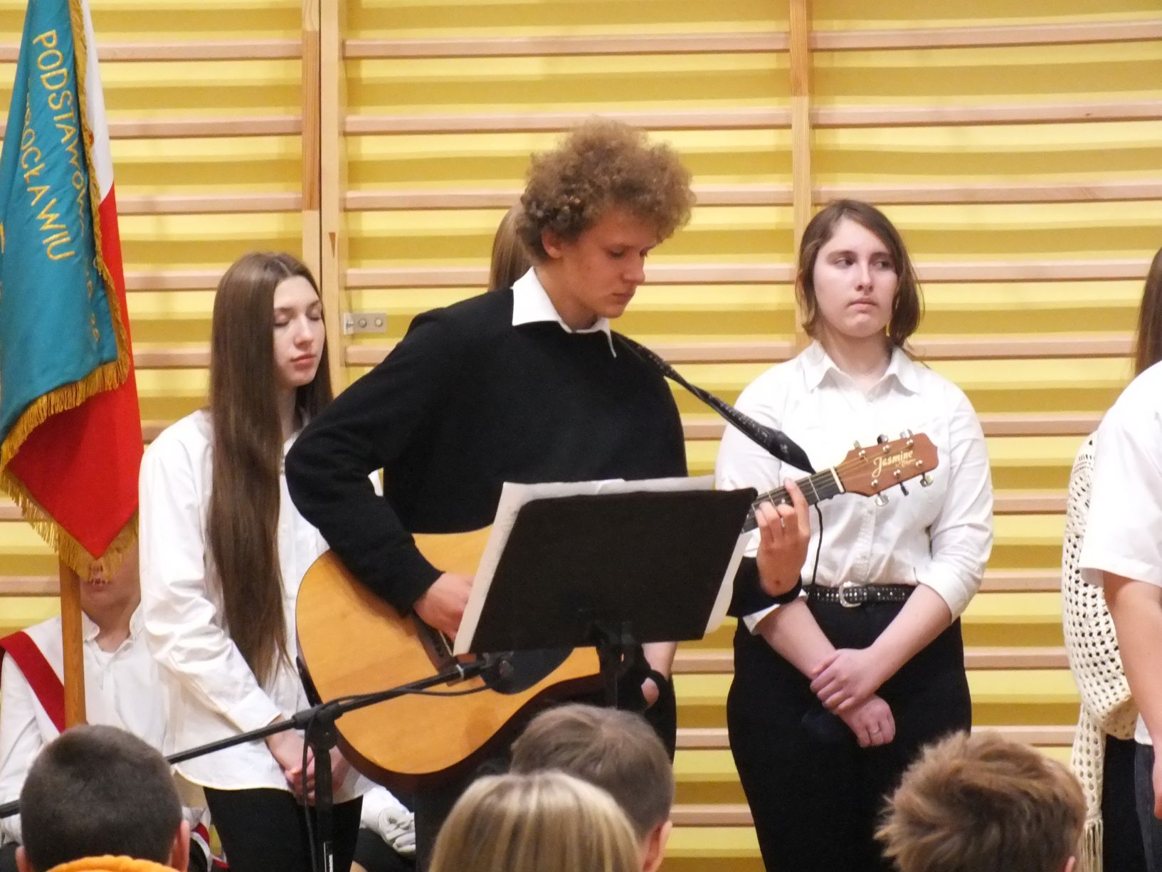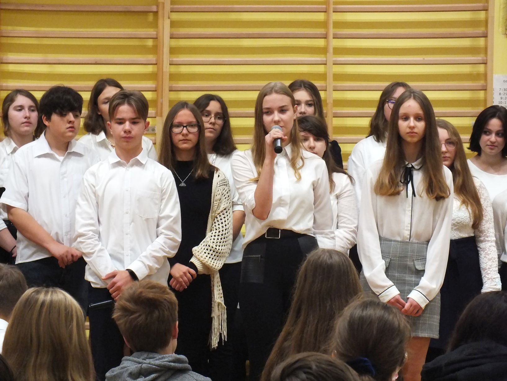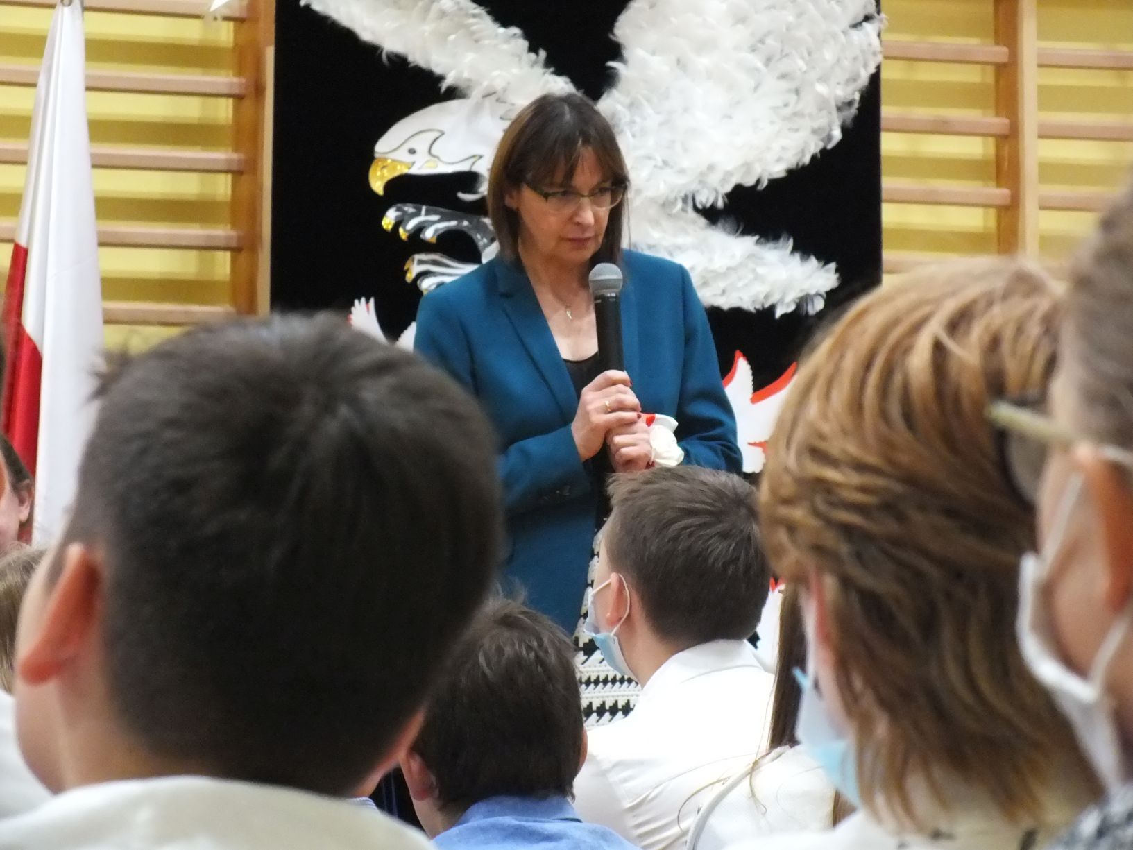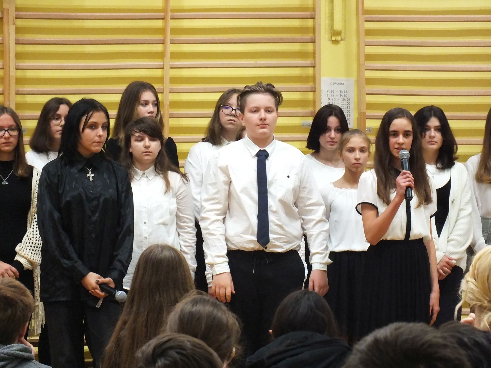 We wtorek 9-11-2021 uczniowie klas 8a i 8b przy wsparciu p. Dominiki Gromali i p. Alicji Wiłkowskiej przygotowali apel z okazji 103. rocznicy odzyskania przez Polskę niepodległości. Na scenie, udekorowanej przez p. Małgorzatę Donarską-Dubaj, pojawiły się talenty naszej szkoły. Usłyszeliśmy wzruszające wiersze i piosenki patriotyczne. Uczniowie naszej szkoły są niezwykle uzdolnieni artystycznie, a my mogliśmy docenić umiejętności Amelki (pianino i recytacja), Grzesia (gitara i wokal), Julii, Szymona, Zuzi i Zuzi, Hani, Alony oraz Wiki (śpiew i recytacja), Zuzi, Mai, Huberta, Ireny, Igi, Oli, Wiki oraz Illi (recytacja). Kto był – docenił, kto nie był – niech żałuje.