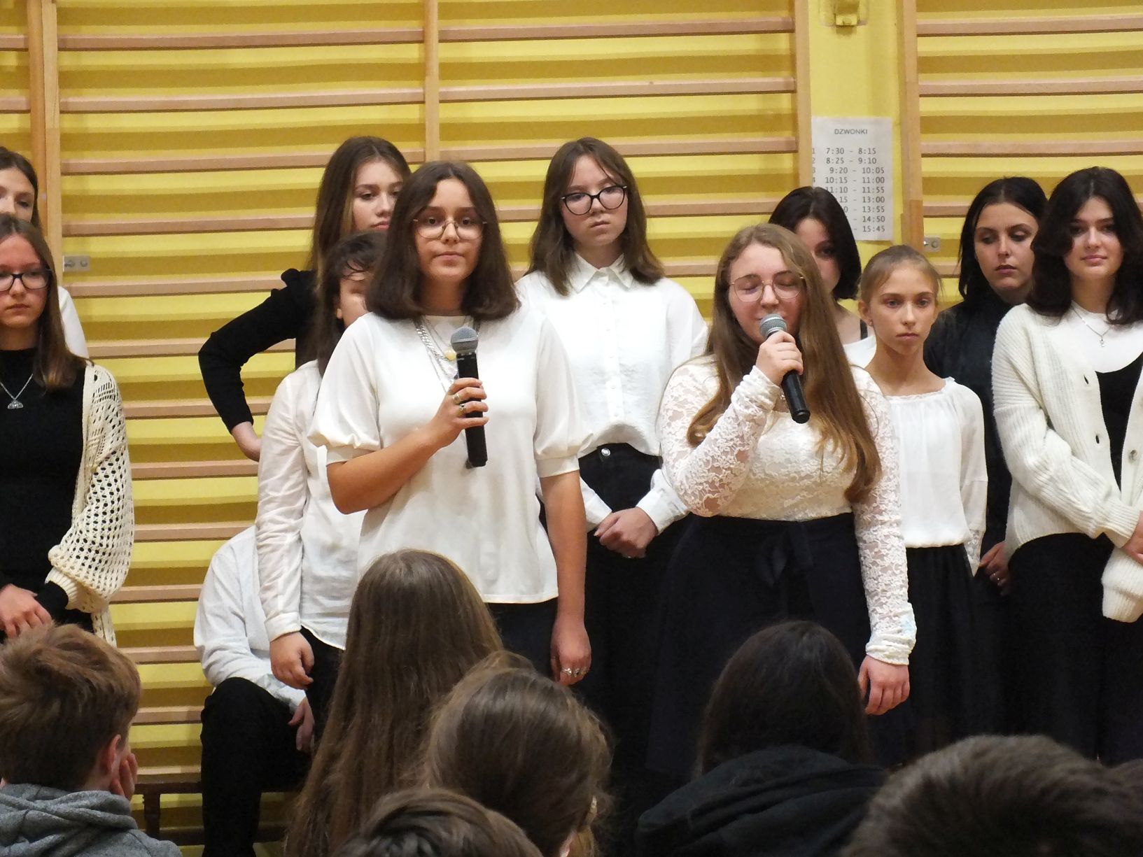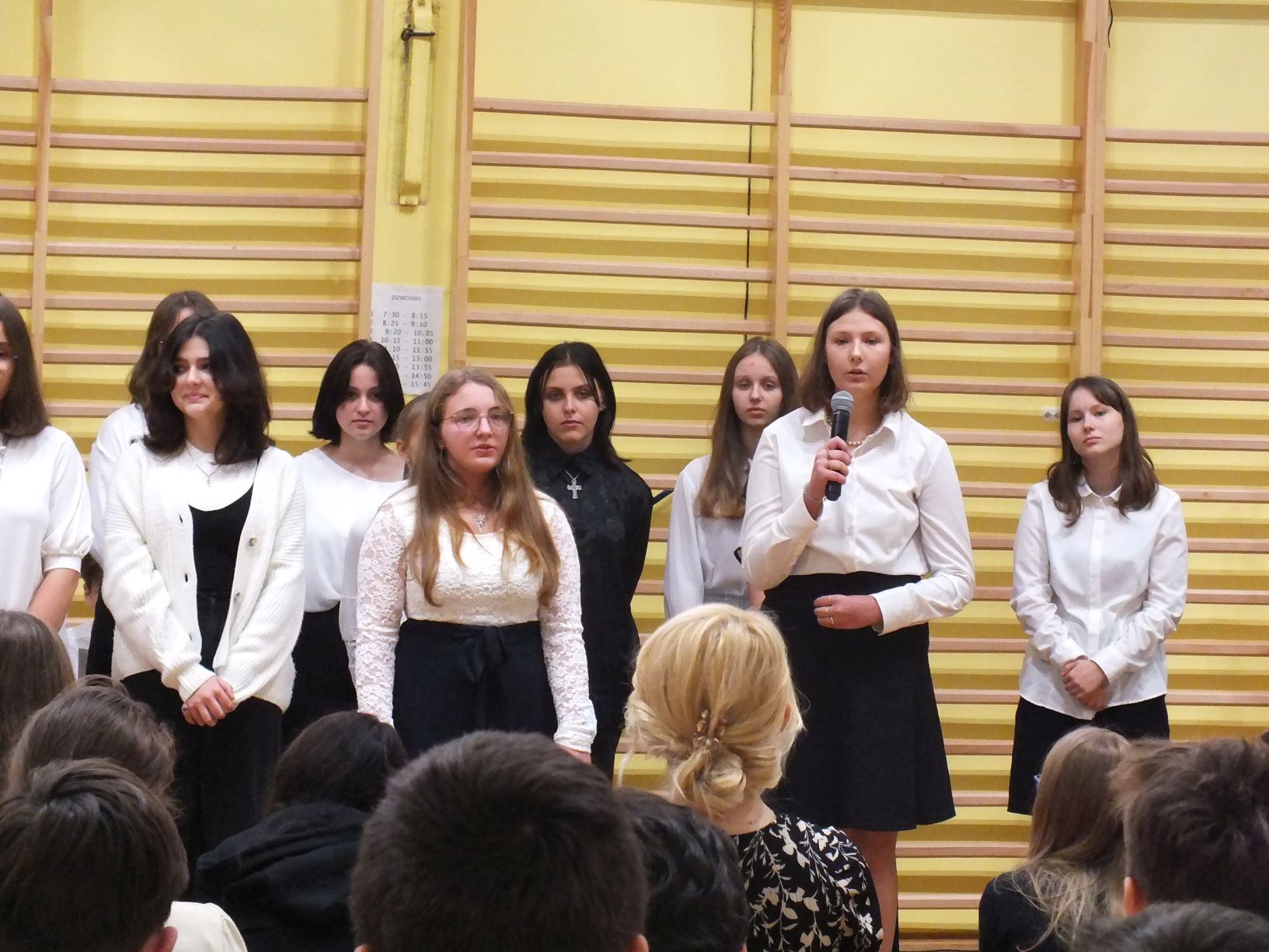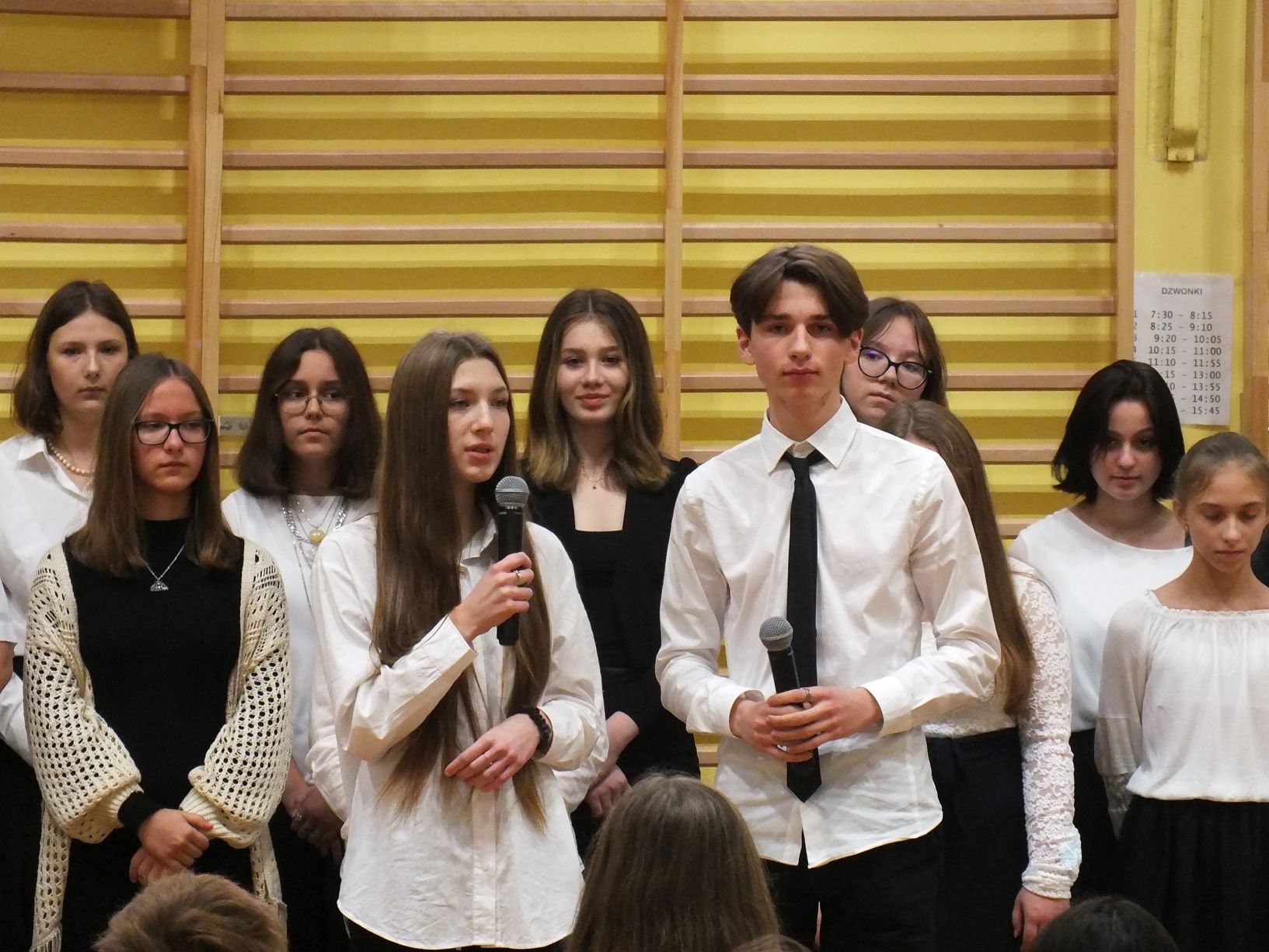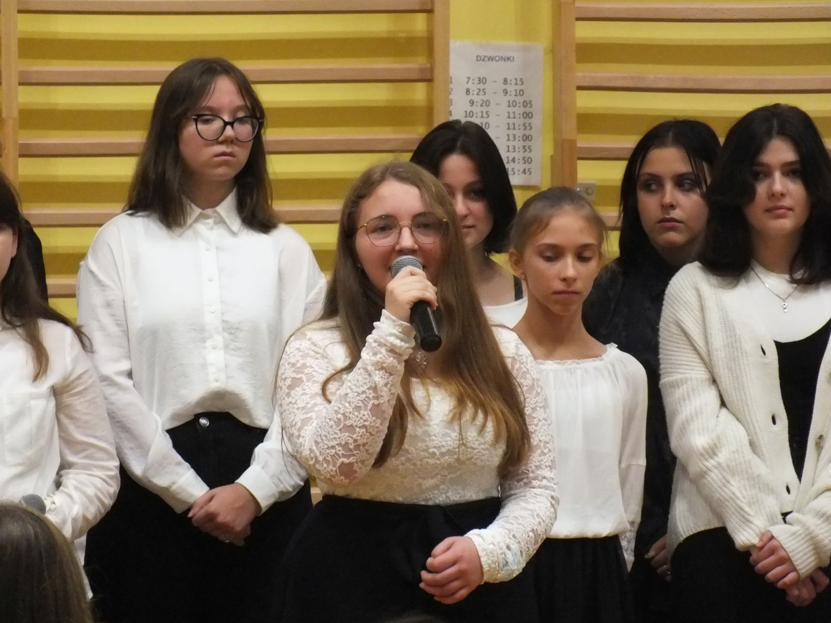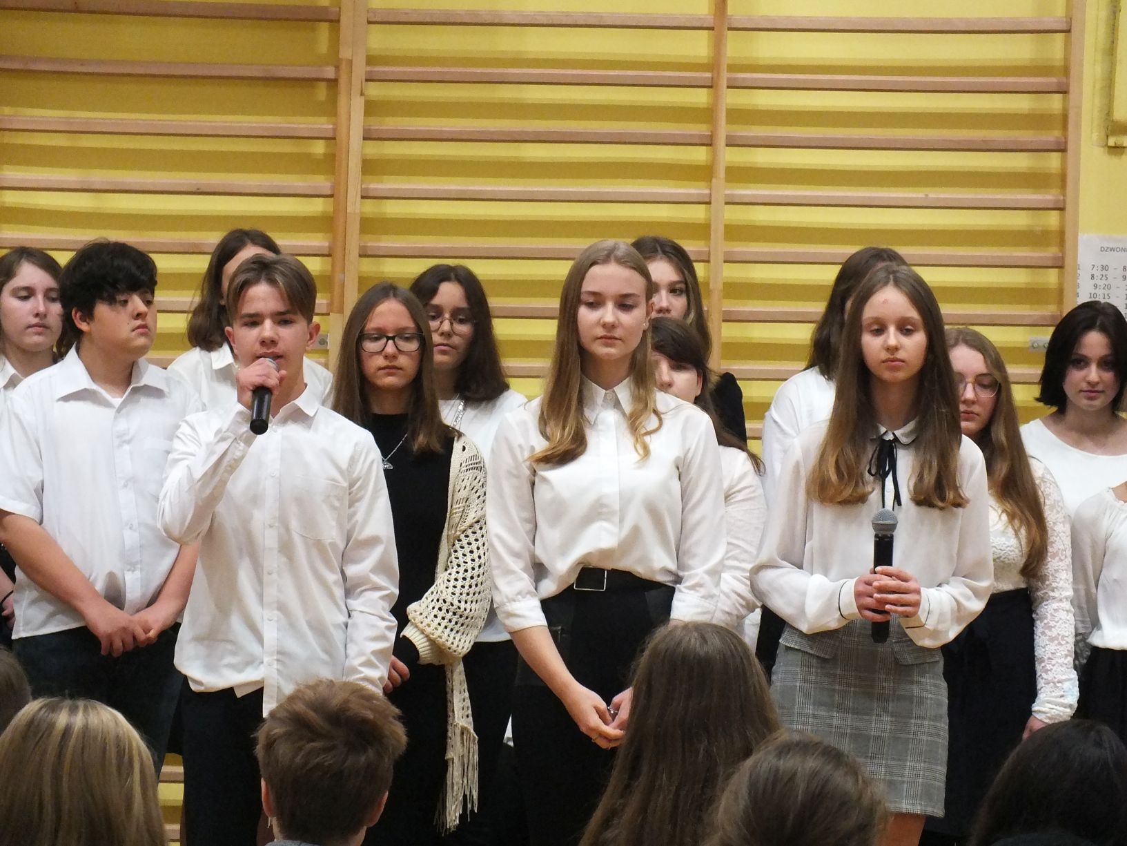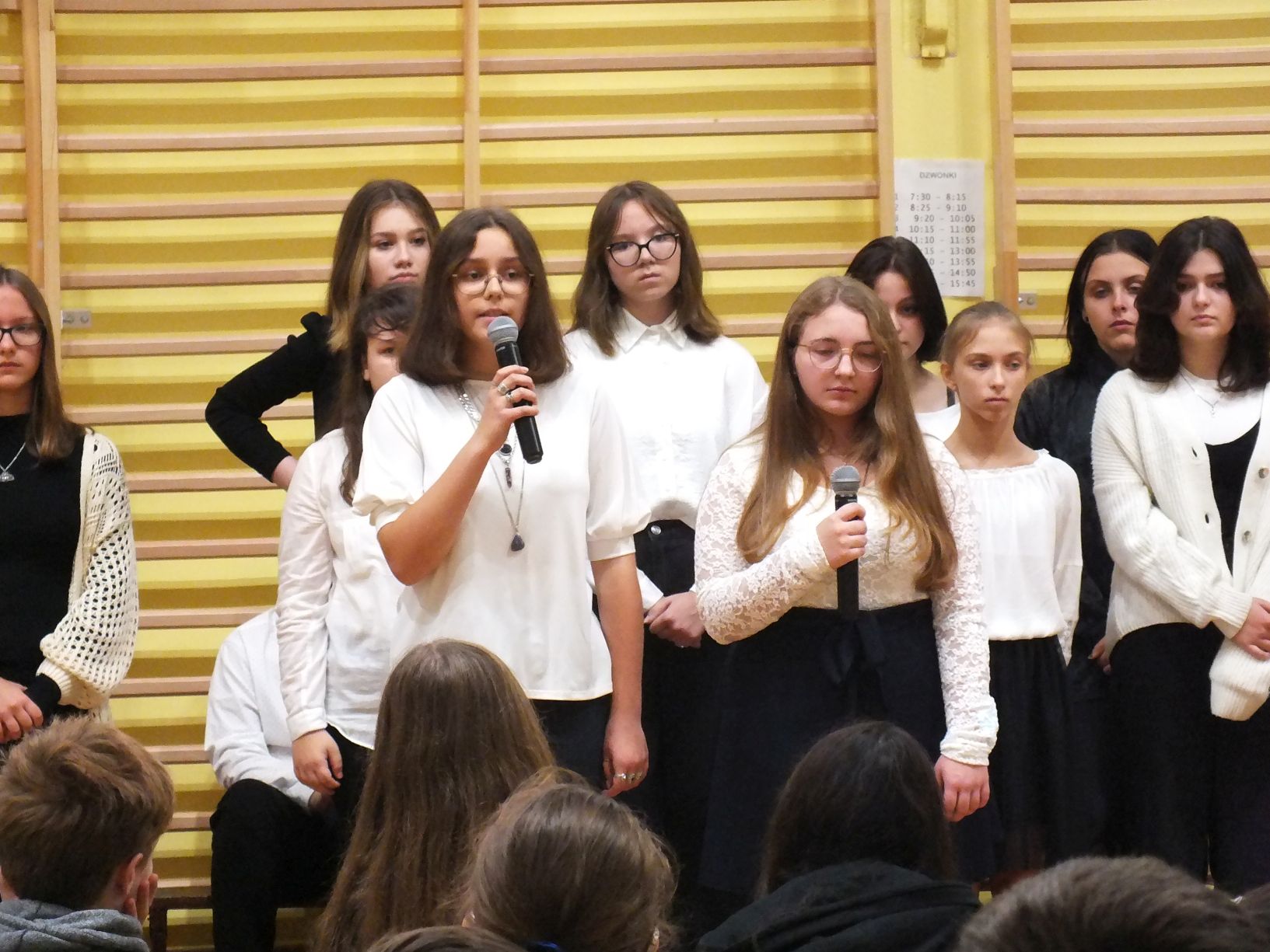 We wtorek 9-11-2021 uczniowie klas 8a i 8b przy wsparciu p. Dominiki Gromali i p. Alicji Wiłkowskiej przygotowali apel z okazji 103. rocznicy odzyskania przez Polskę niepodległości. Na scenie, udekorowanej przez p. Małgorzatę Donarską-Dubaj, pojawiły się talenty naszej szkoły. Usłyszeliśmy wzruszające wiersze i piosenki patriotyczne. Uczniowie naszej szkoły są niezwykle uzdolnieni artystycznie, a my mogliśmy docenić umiejętności Amelki (pianino i recytacja), Grzesia (gitara i wokal), Julii, Szymona, Zuzi i Zuzi, Hani, Alony oraz Wiki (śpiew i recytacja), Zuzi, Mai, Huberta, Ireny, Igi, Oli, Wiki oraz Illi (recytacja). Kto był – docenił, kto nie był – niech żałuje.