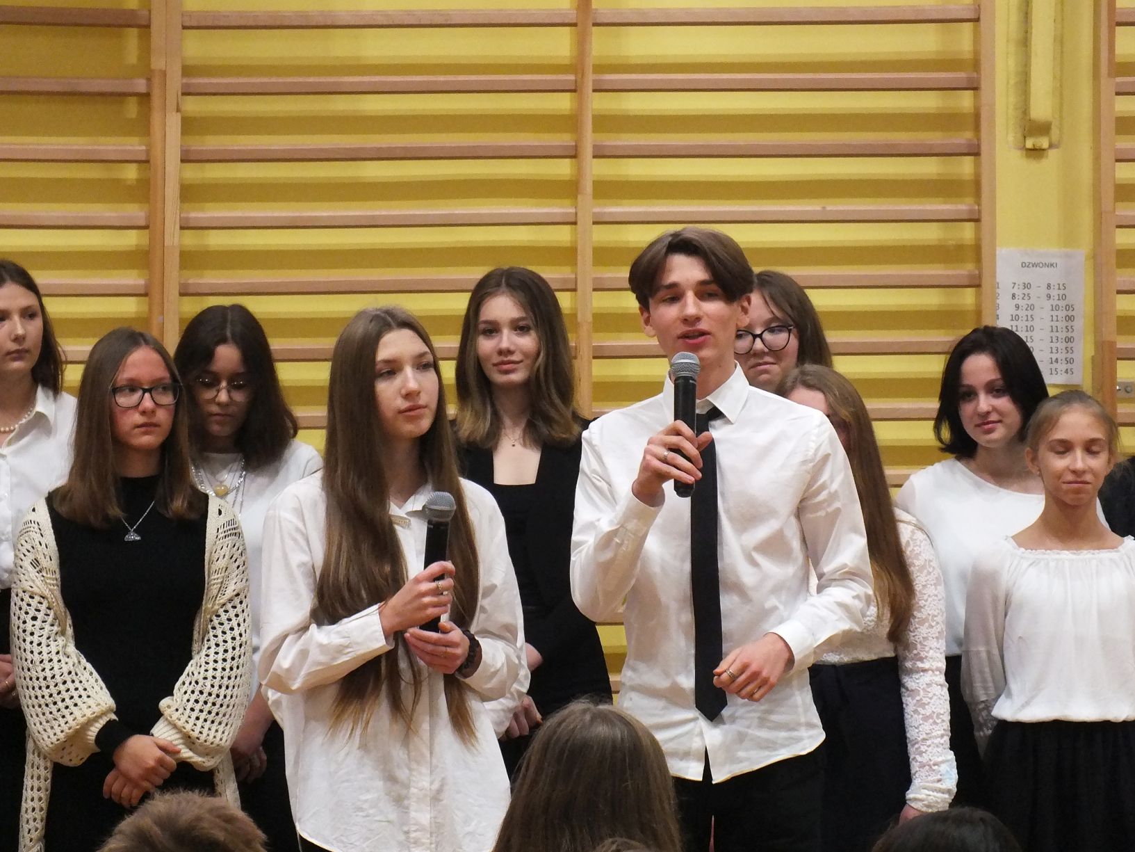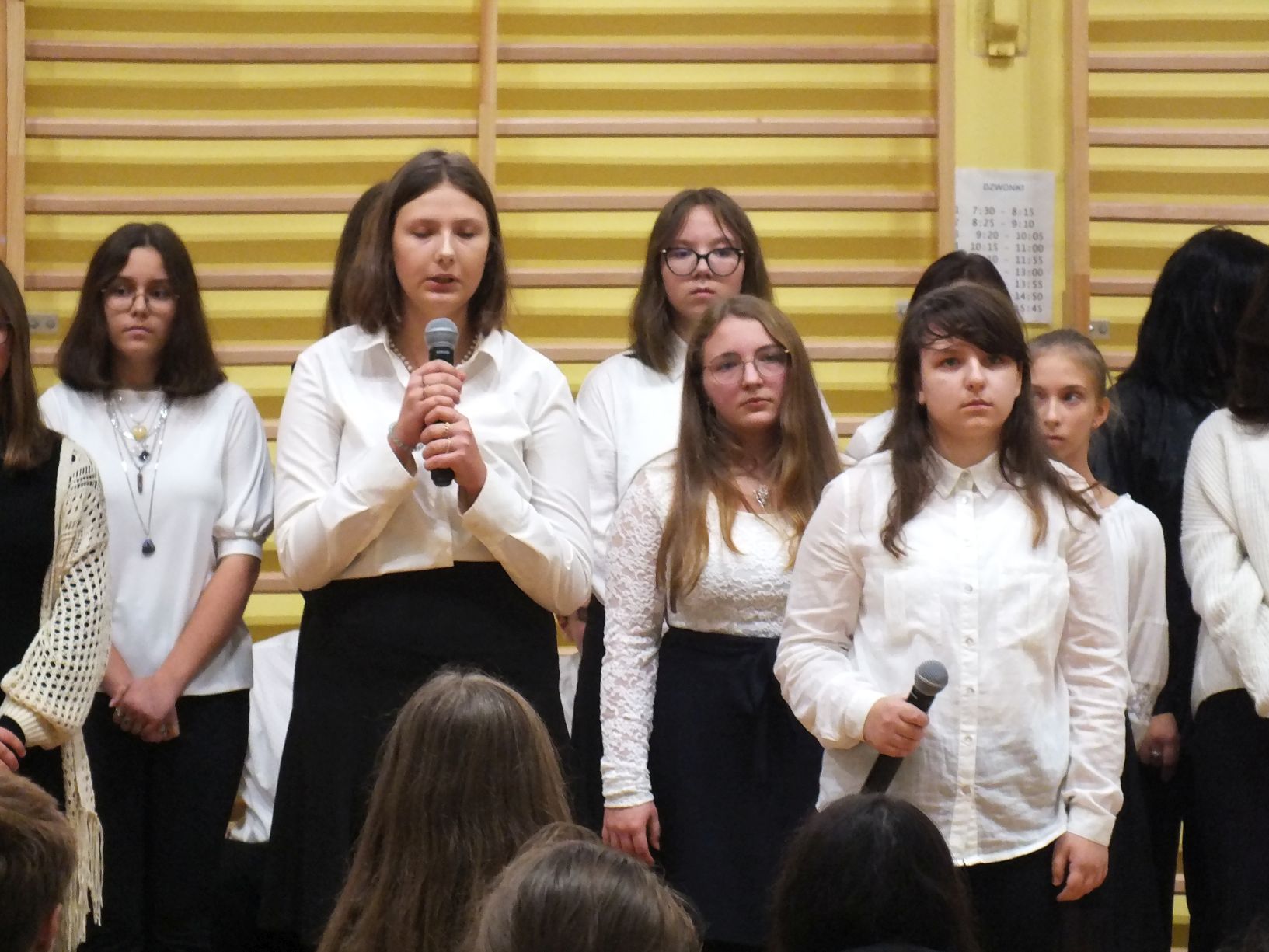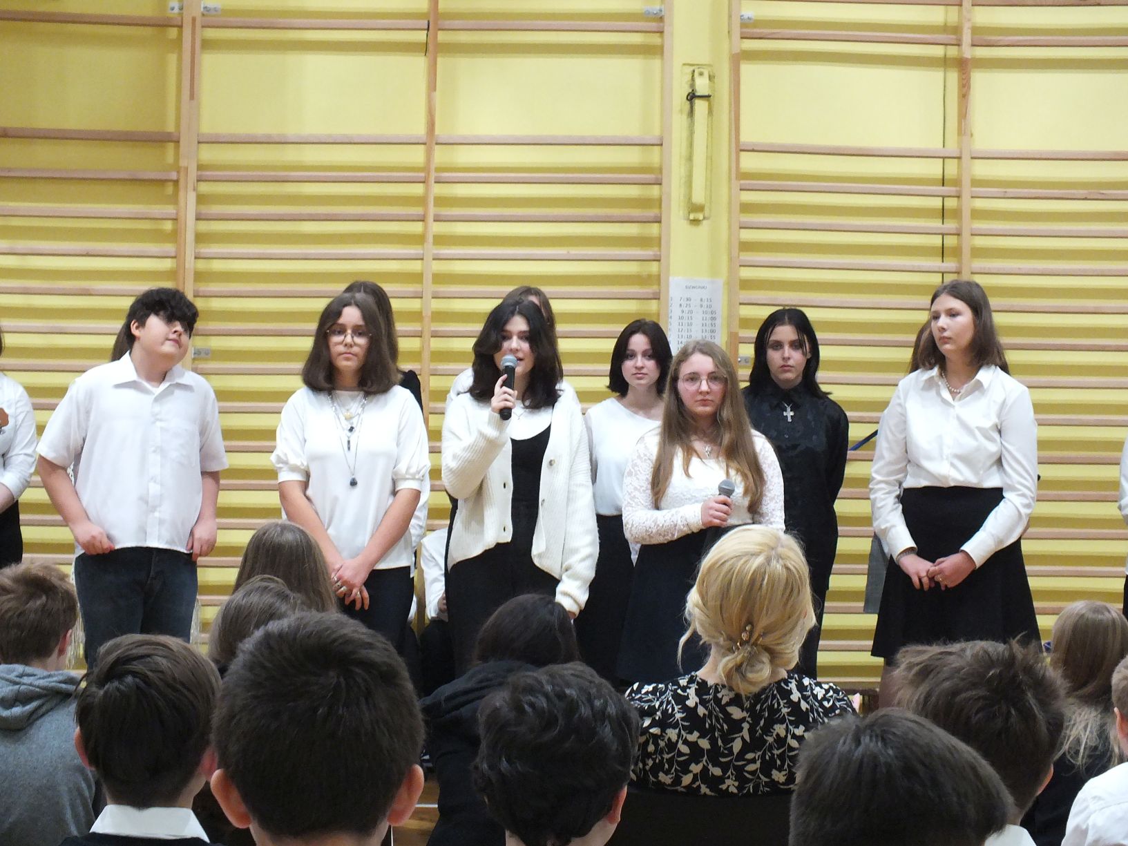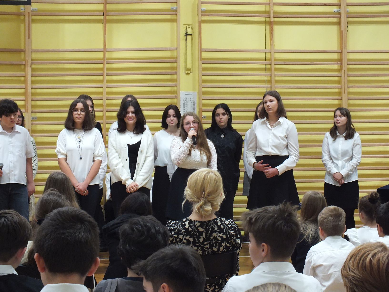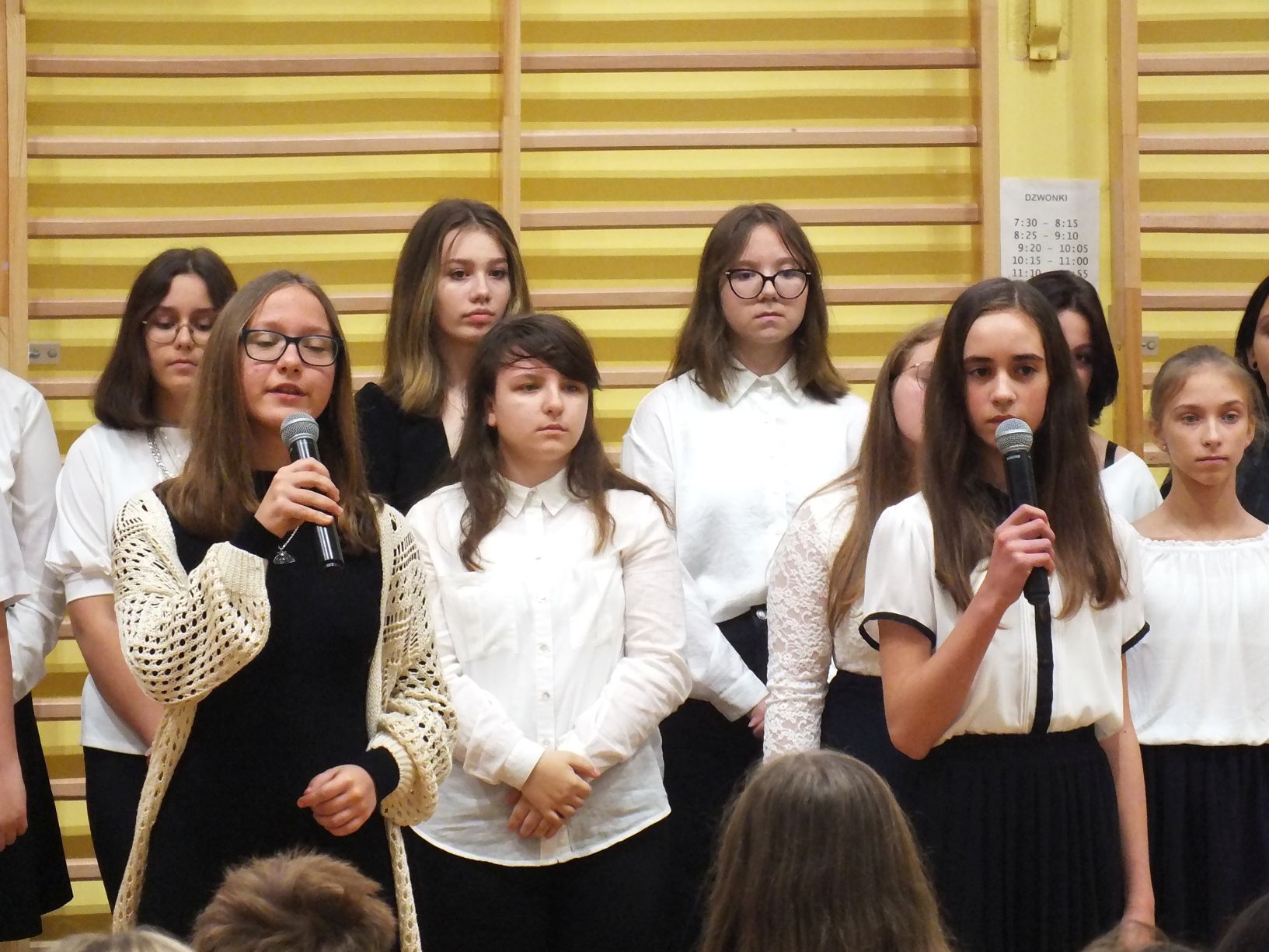 We wtorek 9-11-2021 uczniowie klas 8a i 8b przy wsparciu p. Dominiki Gromali i p. Alicji Wiłkowskiej przygotowali apel z okazji 103. rocznicy odzyskania przez Polskę niepodległości. Na scenie, udekorowanej przez p. Małgorzatę Donarską-Dubaj, pojawiły się talenty naszej szkoły. Usłyszeliśmy wzruszające wiersze i piosenki patriotyczne. Uczniowie naszej szkoły są niezwykle uzdolnieni artystycznie, a my mogliśmy docenić umiejętności Amelki (pianino i recytacja), Grzesia (gitara i wokal), Julii, Szymona, Zuzi i Zuzi, Hani, Alony oraz Wiki (śpiew i recytacja), Zuzi, Mai, Huberta, Ireny, Igi, Oli, Wiki oraz Illi (recytacja). Kto był – docenił, kto nie był – niech żałuje.