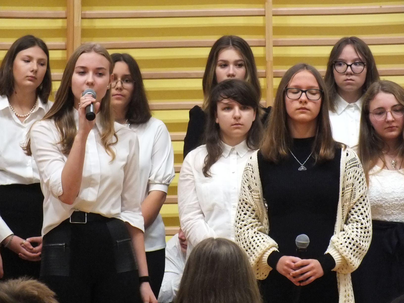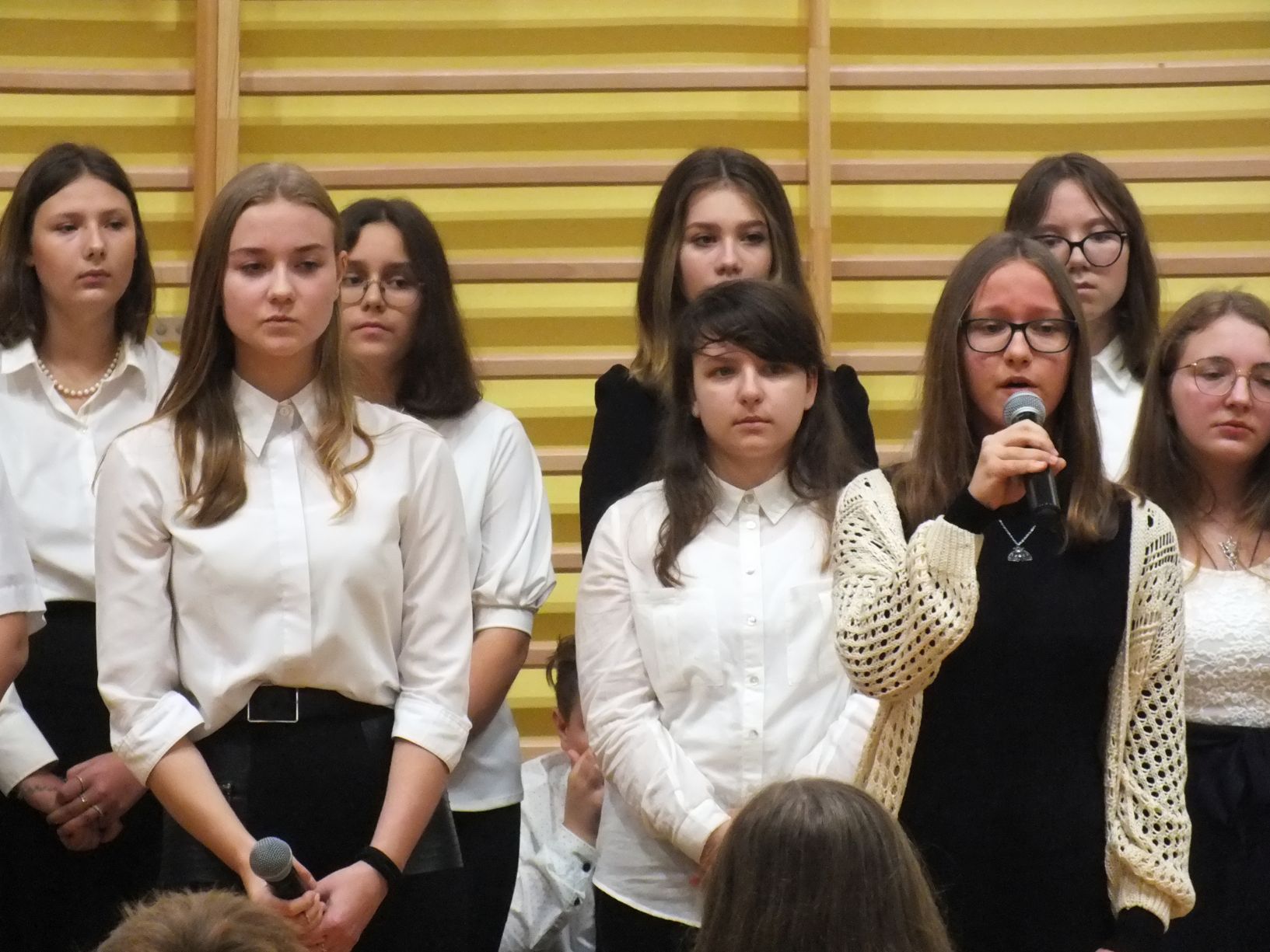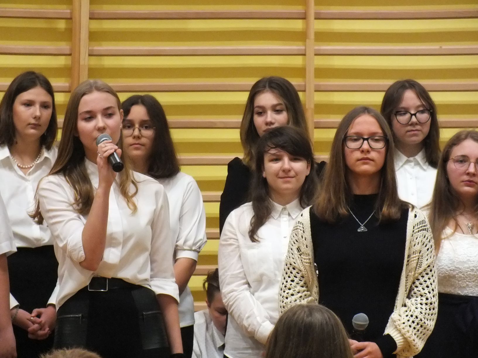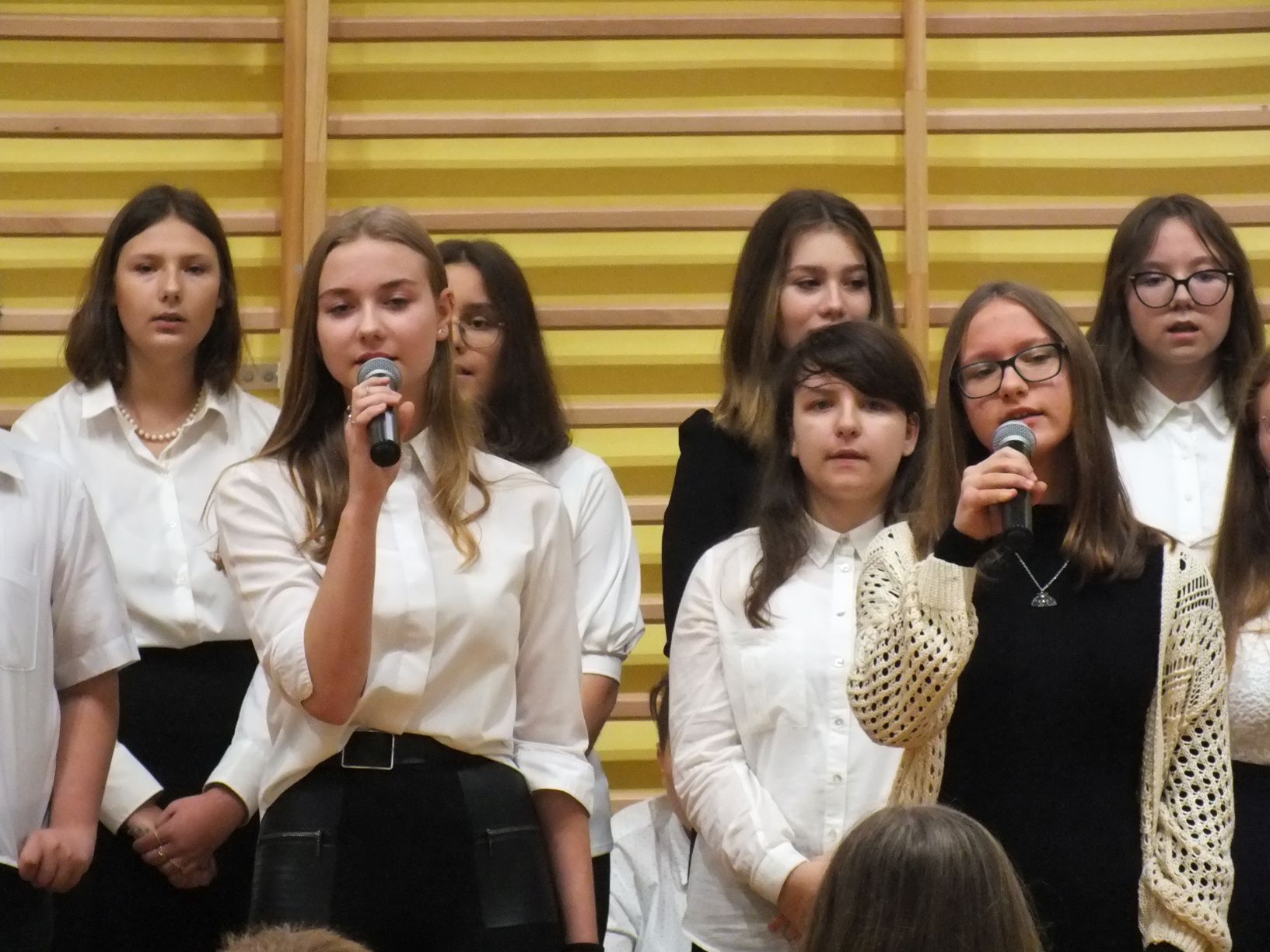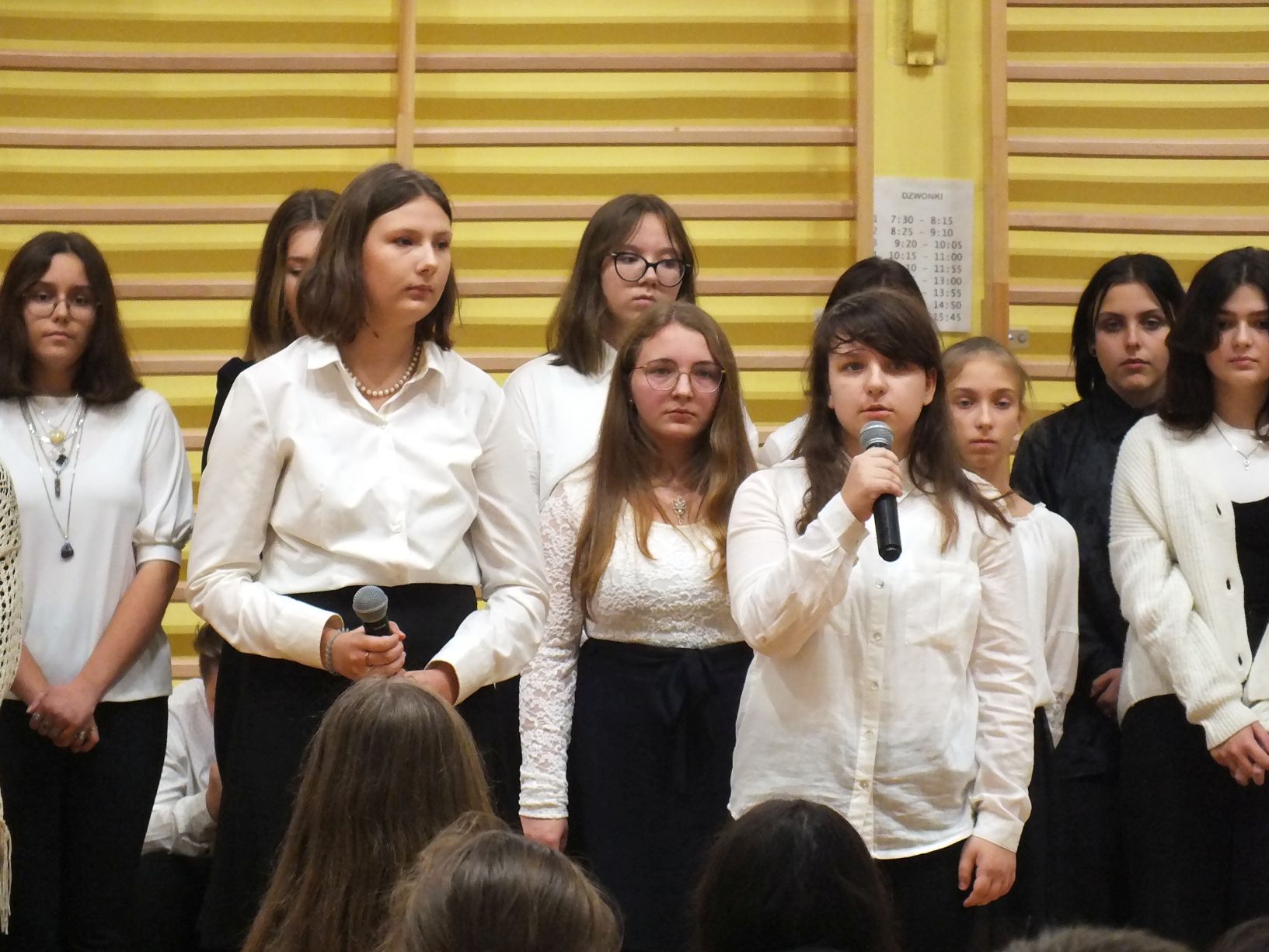 We wtorek 9-11-2021 uczniowie klas 8a i 8b przy wsparciu p. Dominiki Gromali i p. Alicji Wiłkowskiej przygotowali apel z okazji 103. rocznicy odzyskania przez Polskę niepodległości. Na scenie, udekorowanej przez p. Małgorzatę Donarską-Dubaj, pojawiły się talenty naszej szkoły. Usłyszeliśmy wzruszające wiersze i piosenki patriotyczne. Uczniowie naszej szkoły są niezwykle uzdolnieni artystycznie, a my mogliśmy docenić umiejętności Amelki (pianino i recytacja), Grzesia (gitara i wokal), Julii, Szymona, Zuzi i Zuzi, Hani, Alony oraz Wiki (śpiew i recytacja), Zuzi, Mai, Huberta, Ireny, Igi, Oli, Wiki oraz Illi (recytacja). Kto był – docenił, kto nie był – niech żałuje.