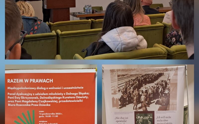 16 października reprezentacja ósmoklasistów wzięła udział w międzynarodowym panelu dyskusyjnym RAZEM W PRAWACH: MIĘDZYPOKOLENIOWY DIALOG O WOLNOŚCI I UCZESTNICTWIE, który odbył się w auli Wydziału Judaistyki Uniwersytetu Wrocławskiego W RAMACH PROJEKTU