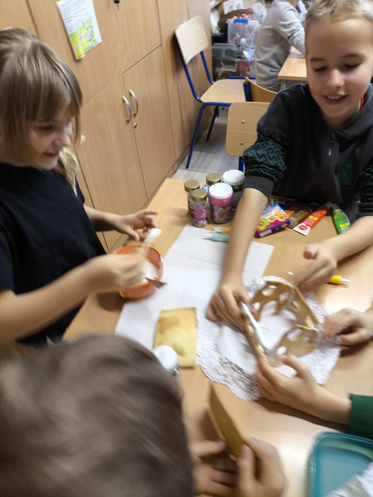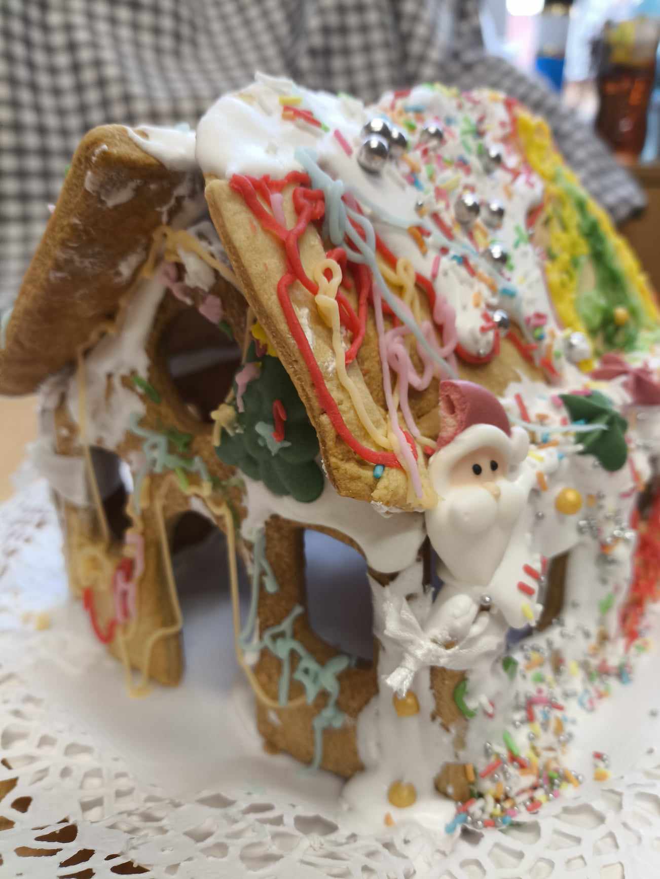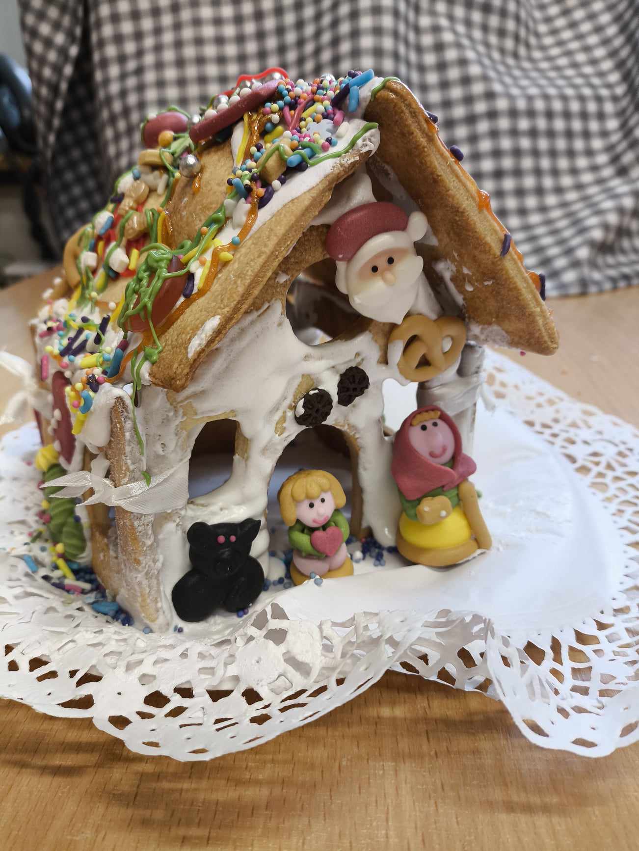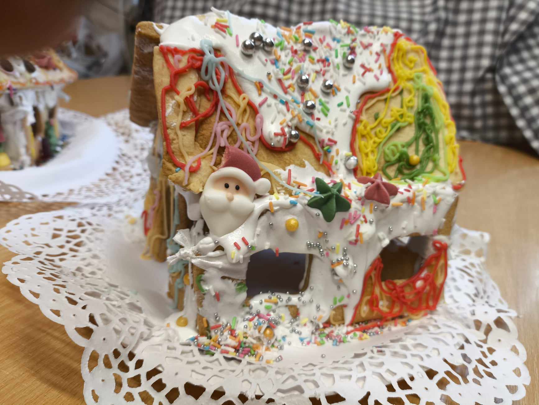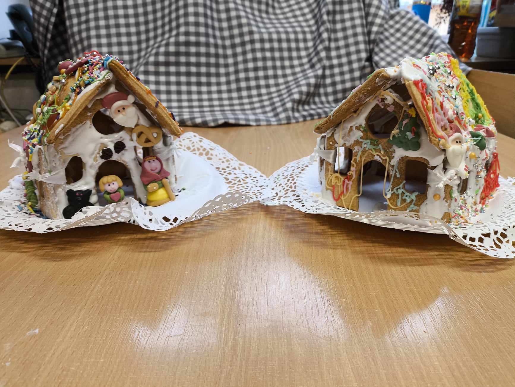 Podczas ostatnich zajęć przed świętami tworzyliśmy domki zimowe z ciastek i lukru. Najwięcej zabawy było jednak podczas dekorowania 😀