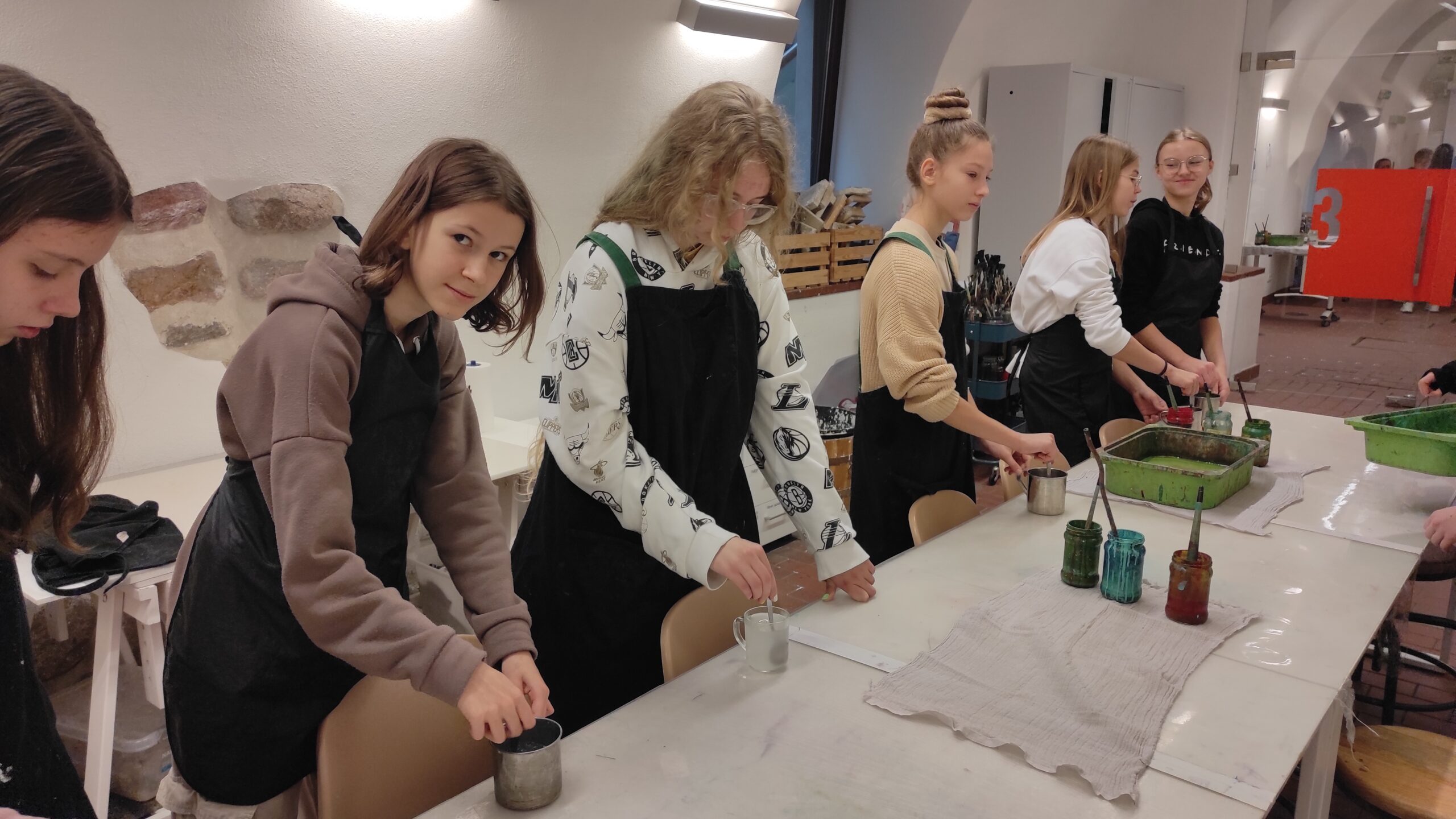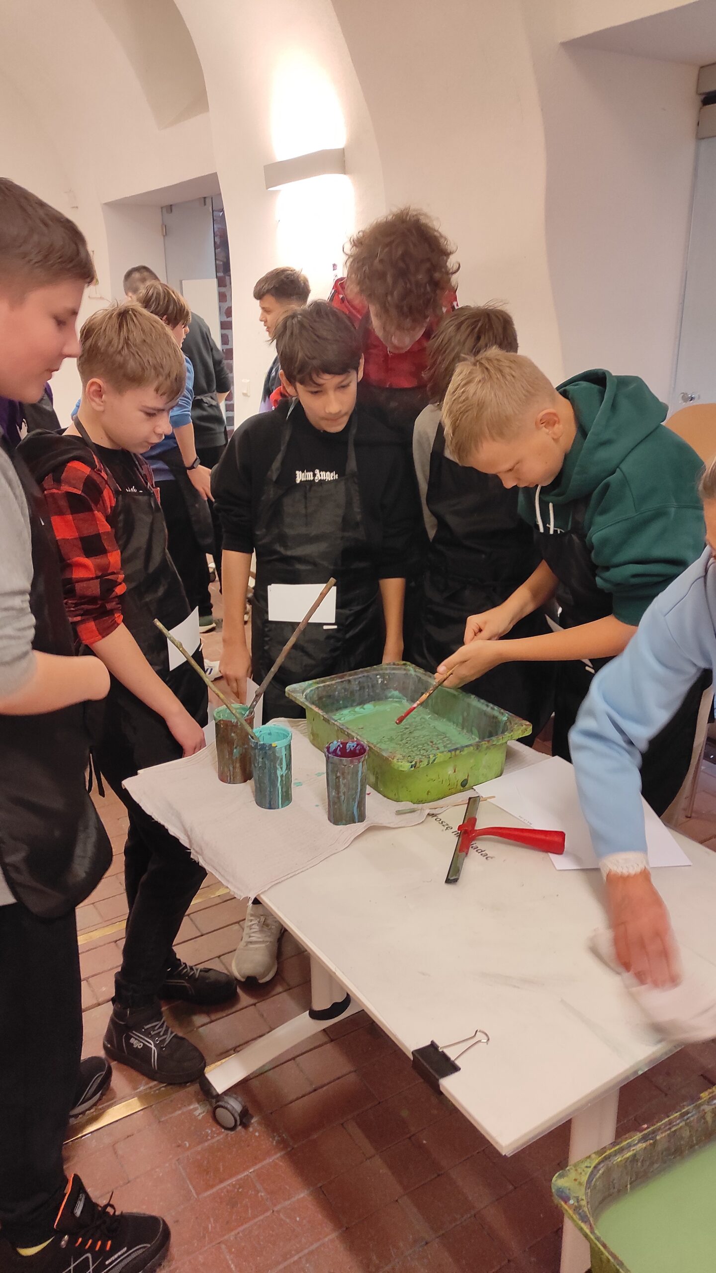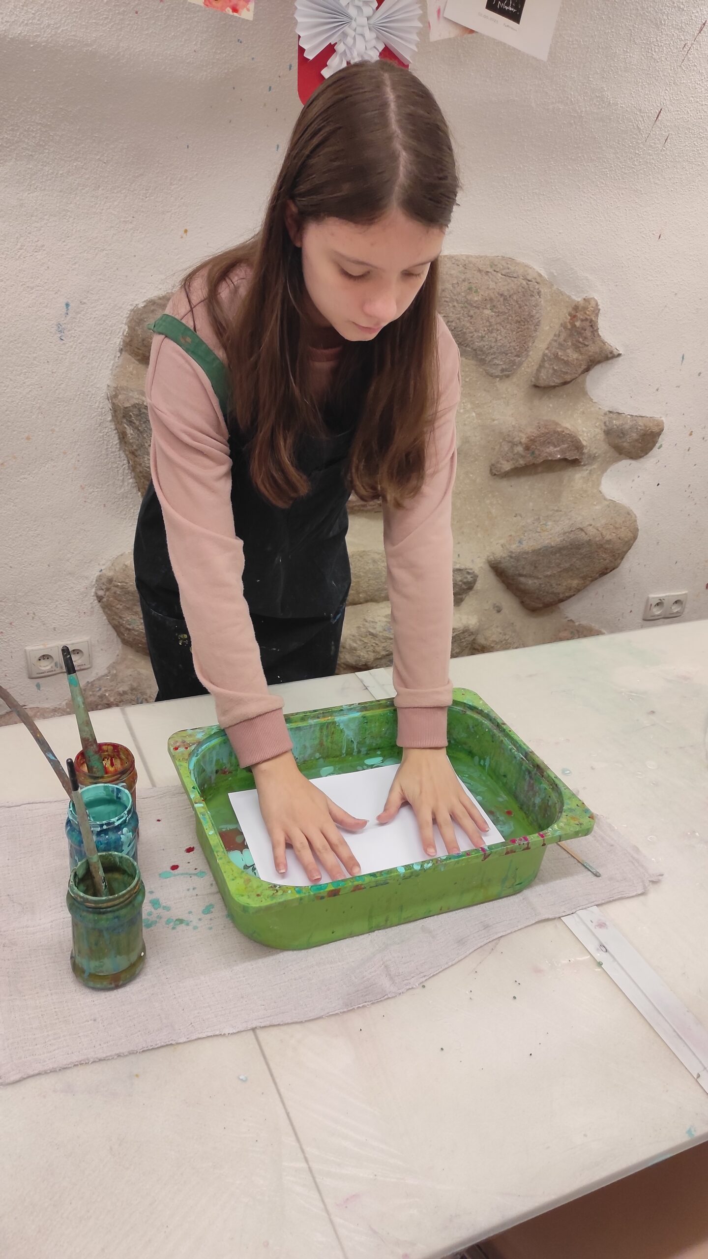 Okazało się bardzo szybko, że warsztaty z własnoręcznie wykonywanego papieru ebru zaciekawiły nie tylko podekscytowane dziewczyny, ale też chłopaków. Nie było widać, żeby ktoś się nudził. Warsztaty sprawiły wszystkim dużo radości.